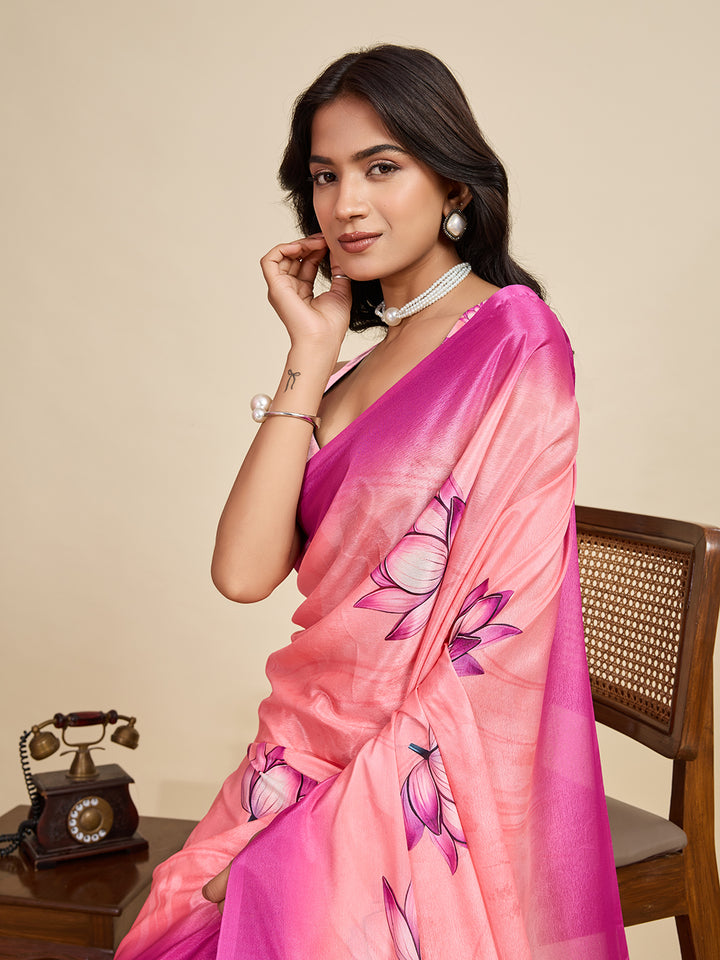 Chinon is a lightweight, semi-sheer fabric with a soft feel and subtle shine. Chinon sarees are perfect for casual wear or light functions, offering a modern look with traditional elegance.