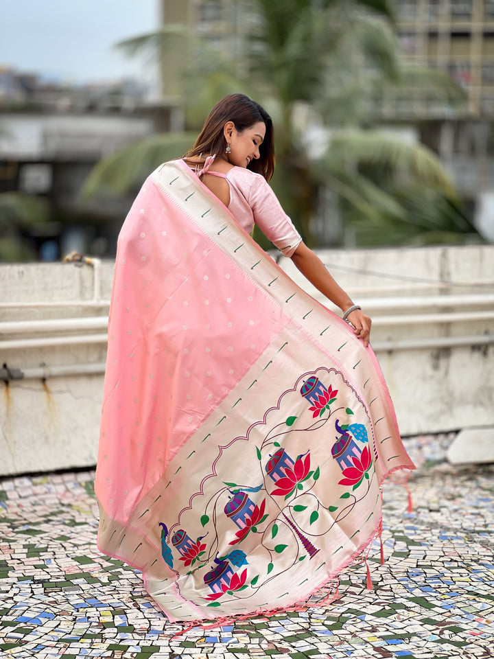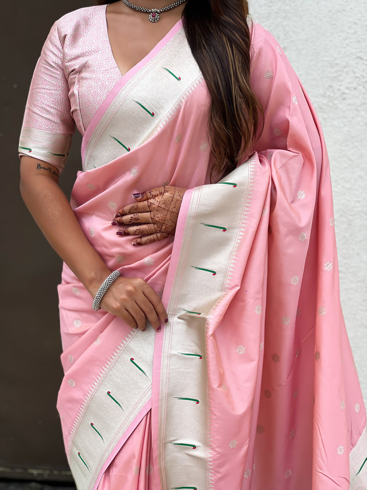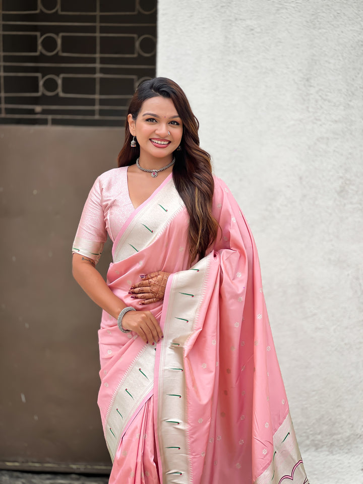 Baby Pink Paithani Saree With Unstiched Blouse