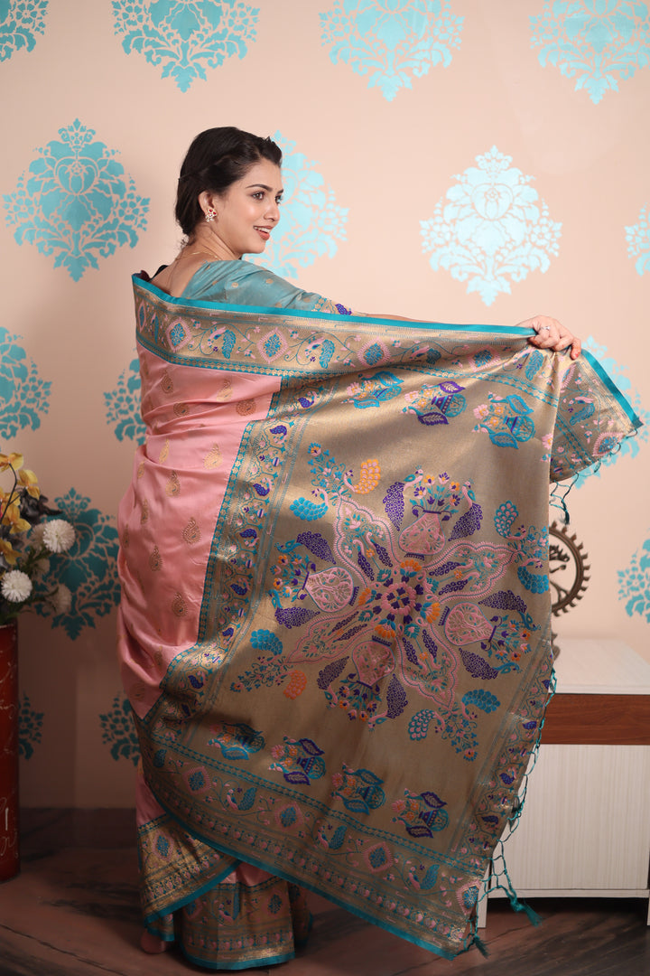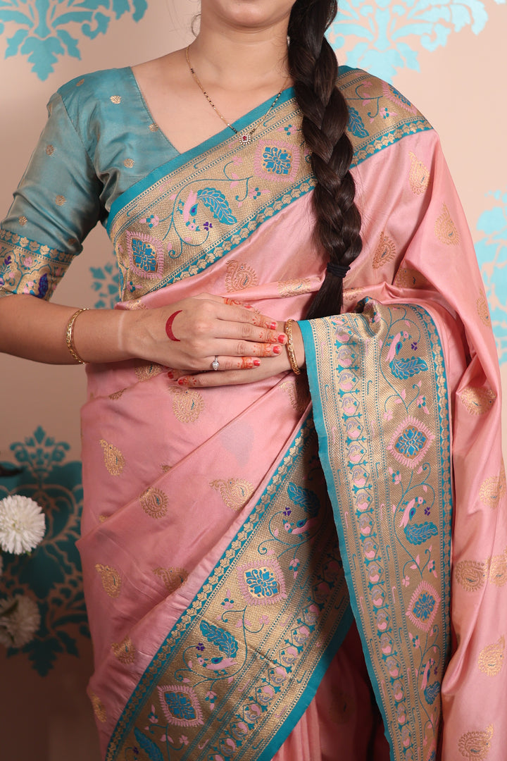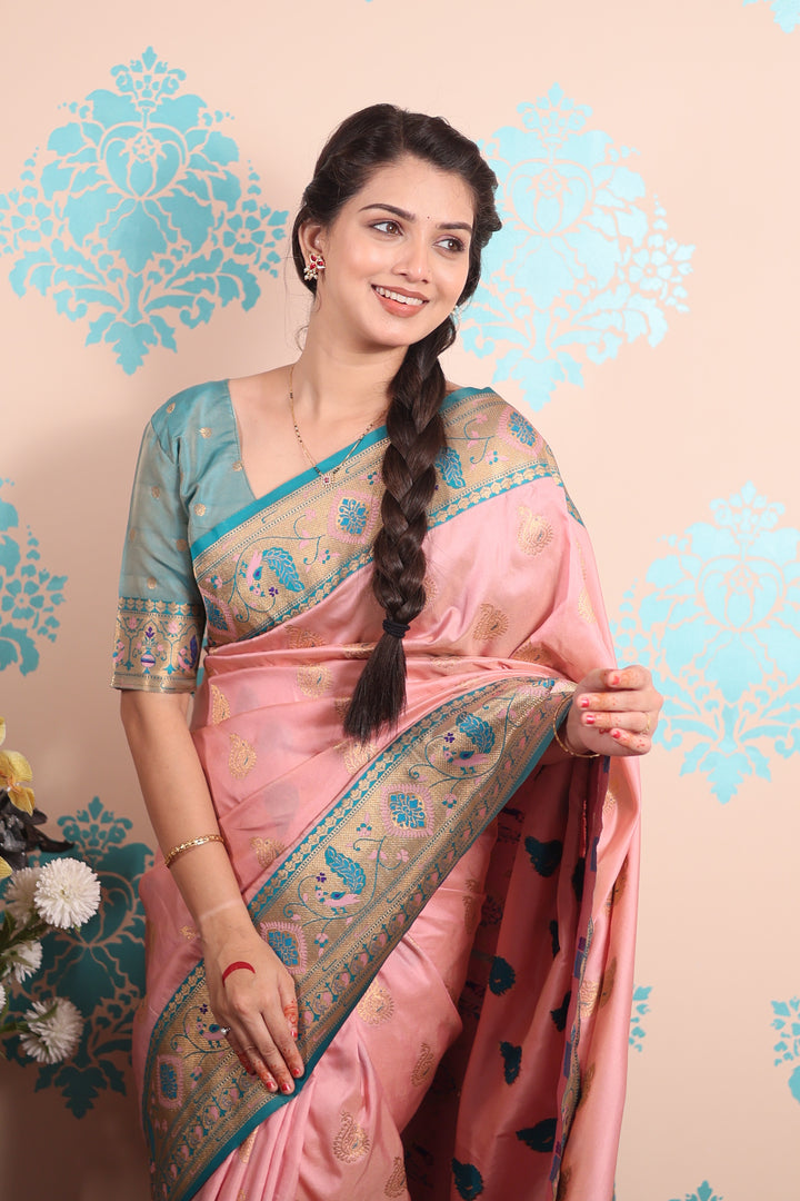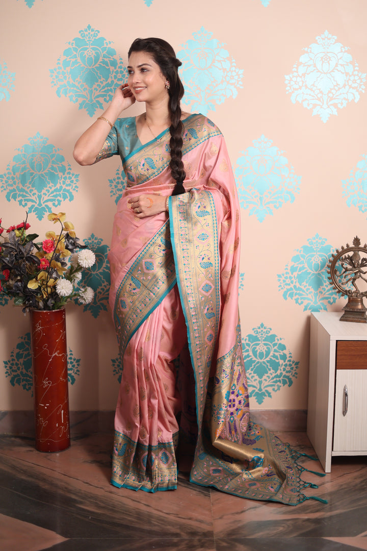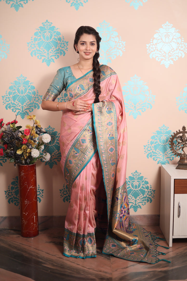 Baby Pink Paithani Saree With Unstiched Blouse