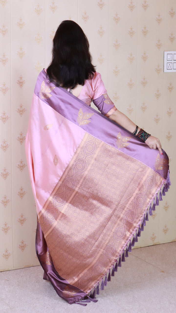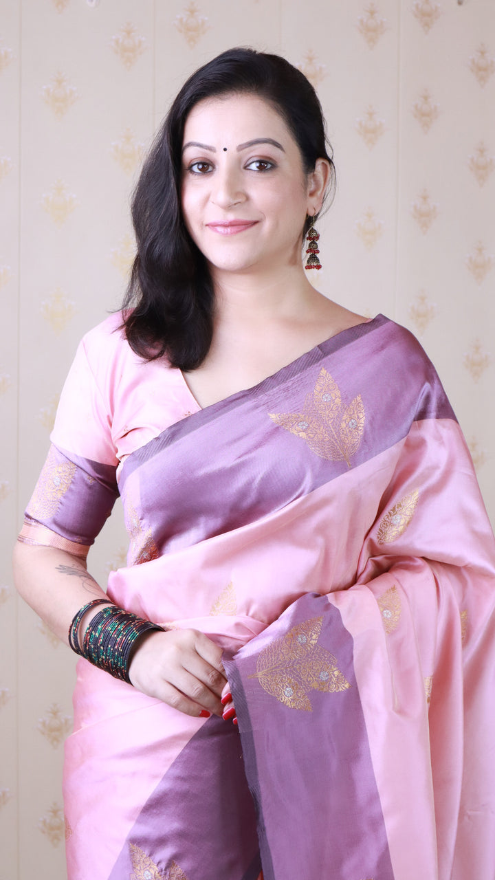 Baby Pink Soft Silk Saree With Unstiched Blouse