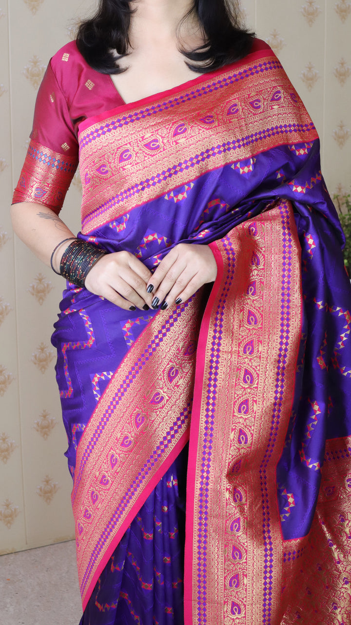 Bengani Banarasi Soft Silk Saree With Unstiched Blouse