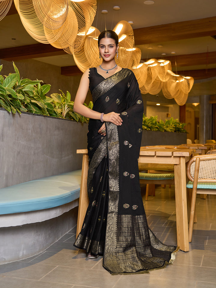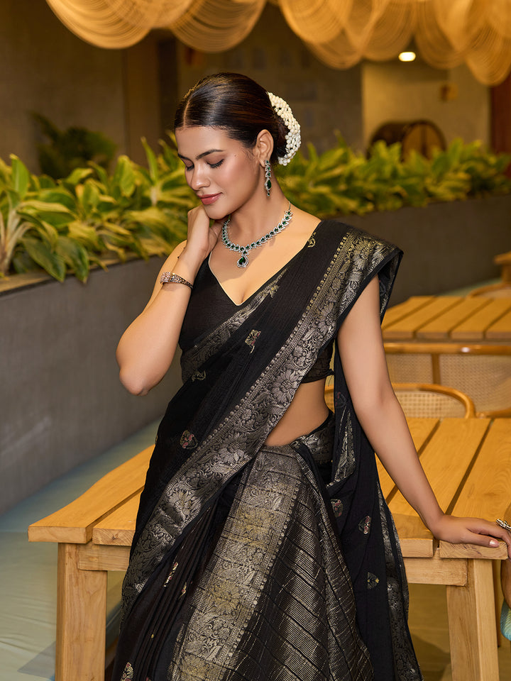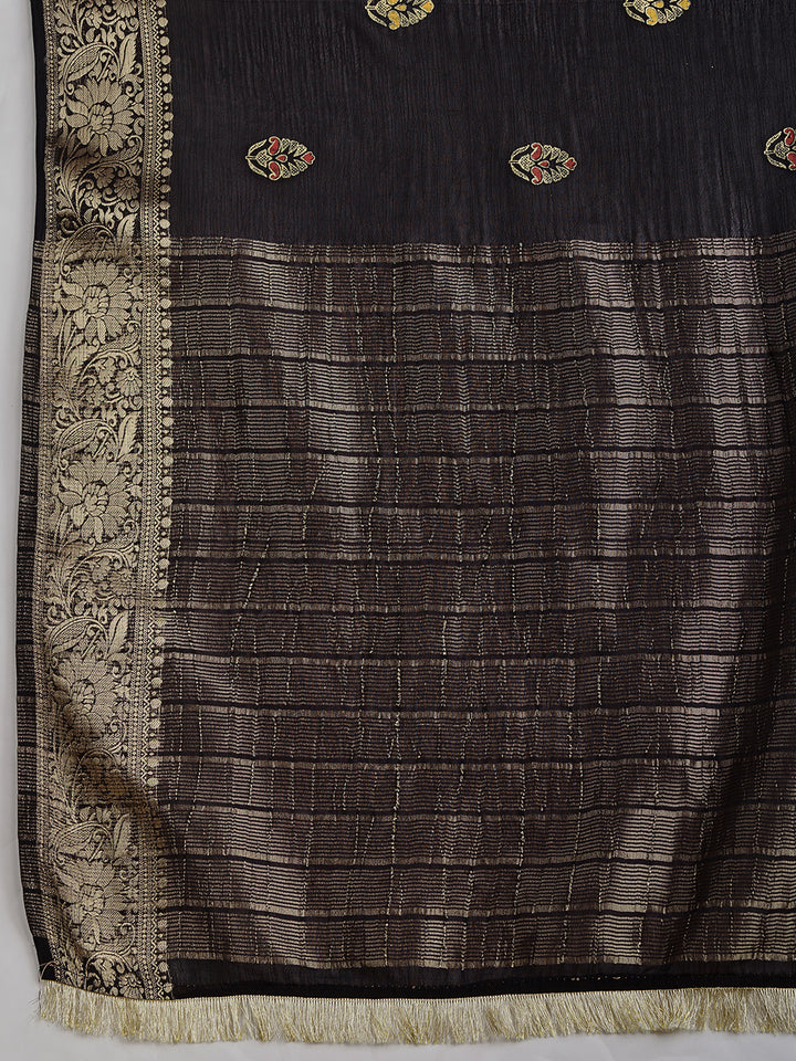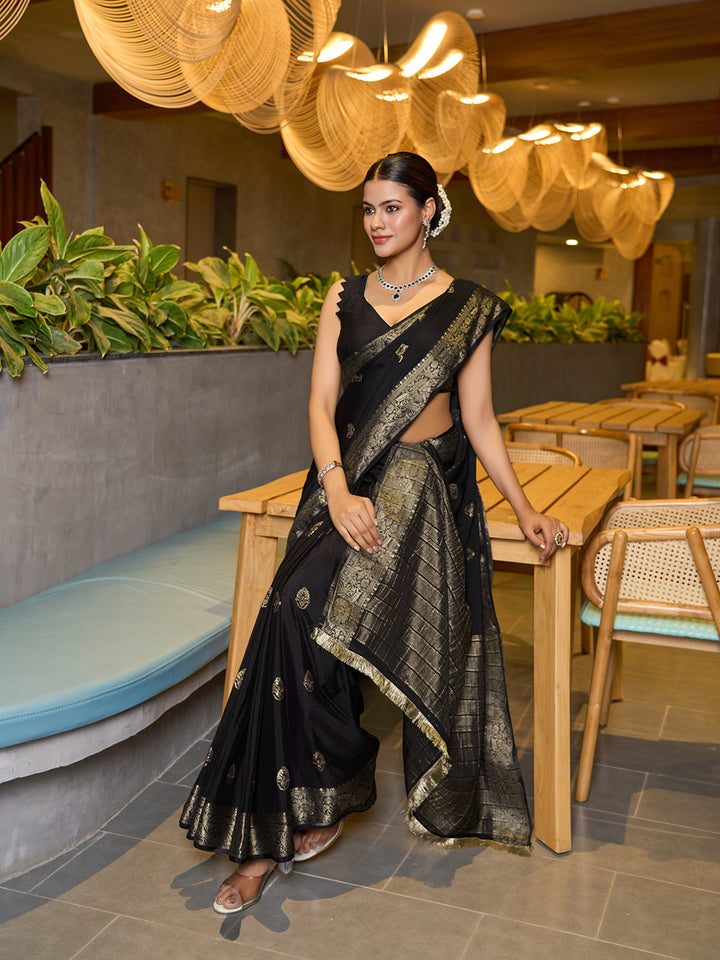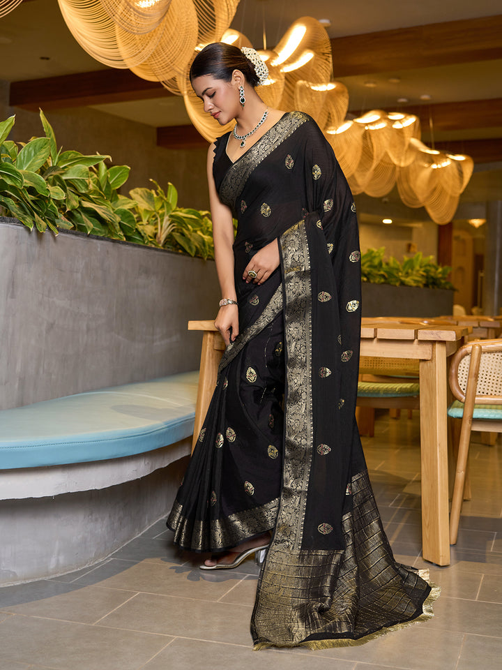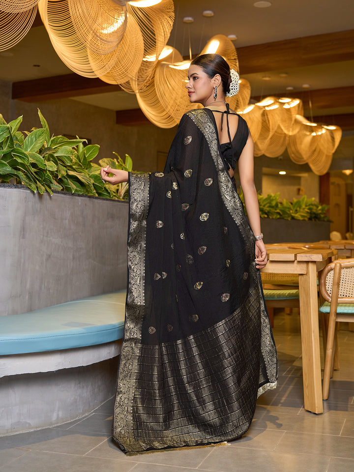 Black Chinon Soft Silk Saree With Unstiched Blouse