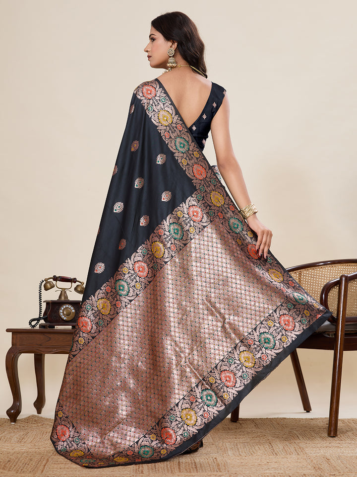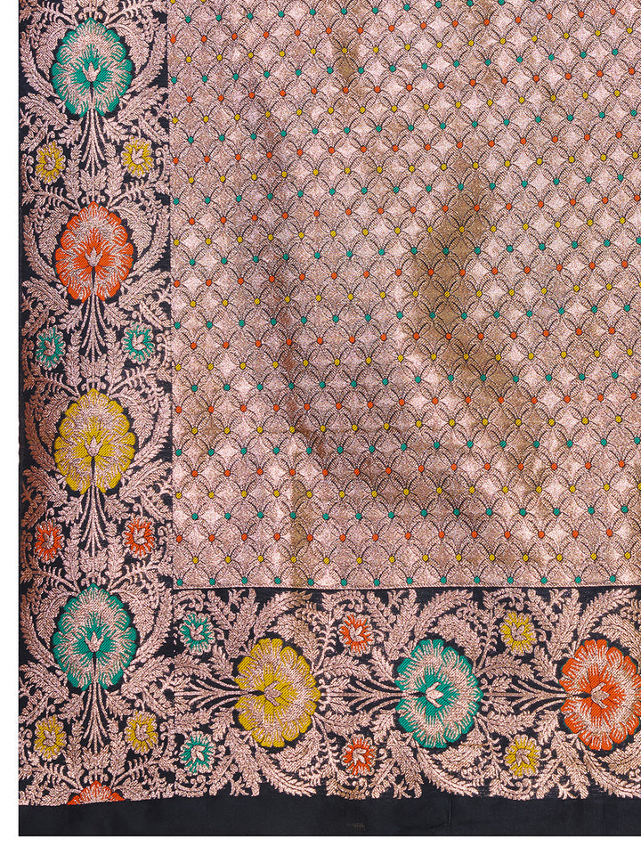 Crafted using intricate jacquard weaving techniques, this saree features woven patterns directly into the fabric. With its elegant texture and timeless appeal, it’s a favorite for traditional events and special gatherings.