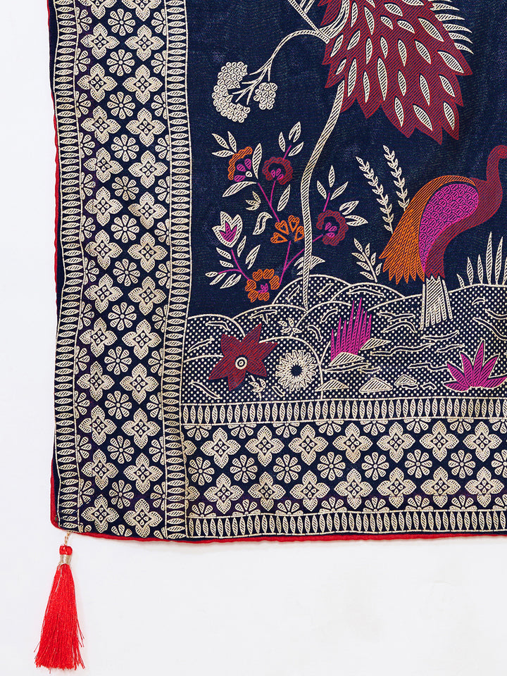 Blue Cotton Saree With Unstiched Blouse