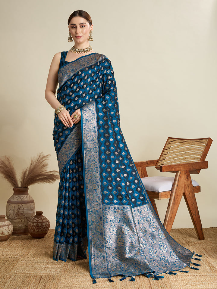 Blue Soft Silk Saree Party Wear With Unstitched Blouse