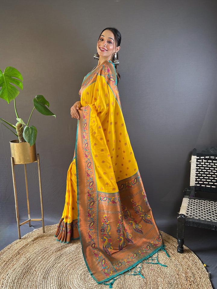 Yellow Paithani Silk Saree With Unstitched Blouse