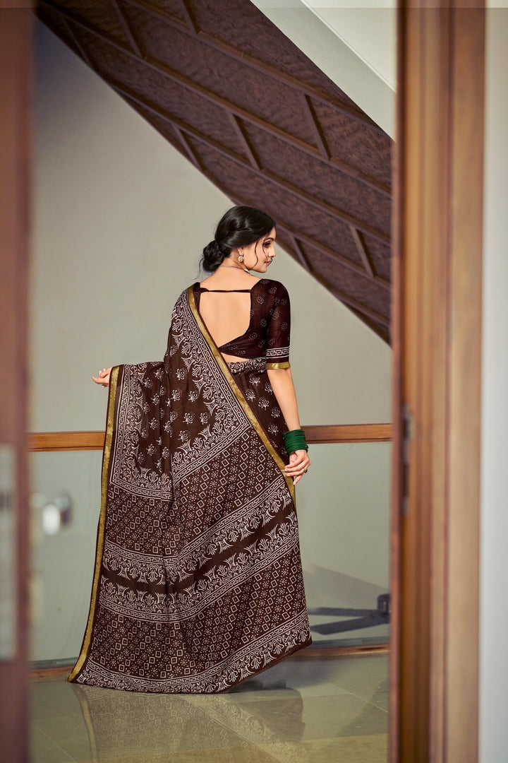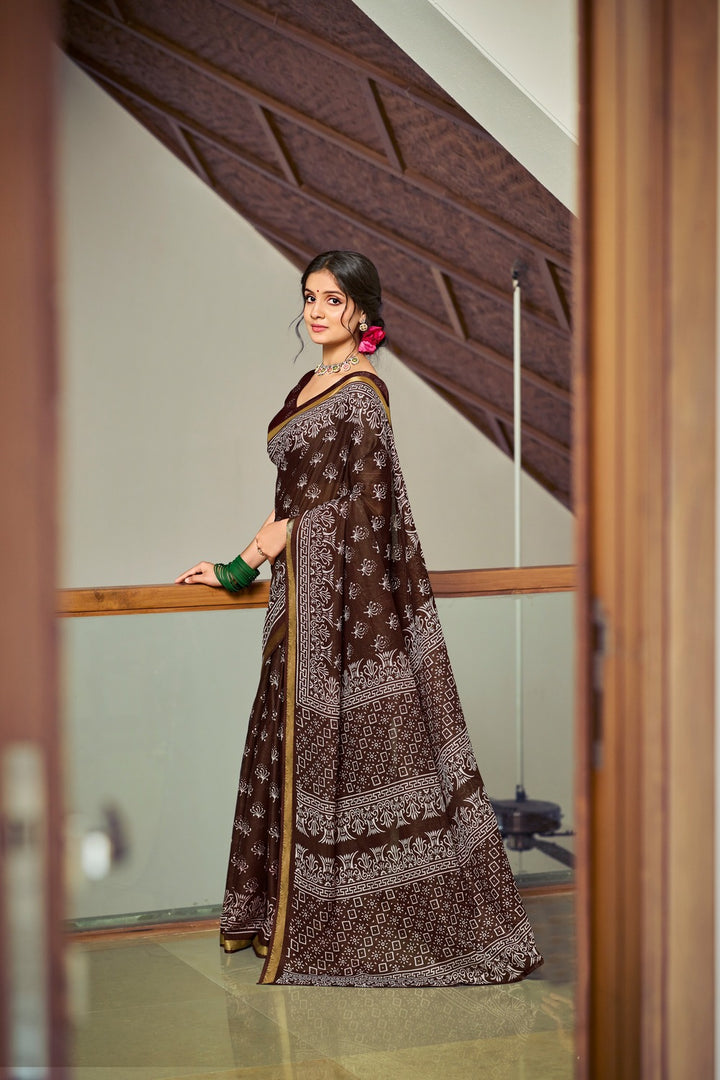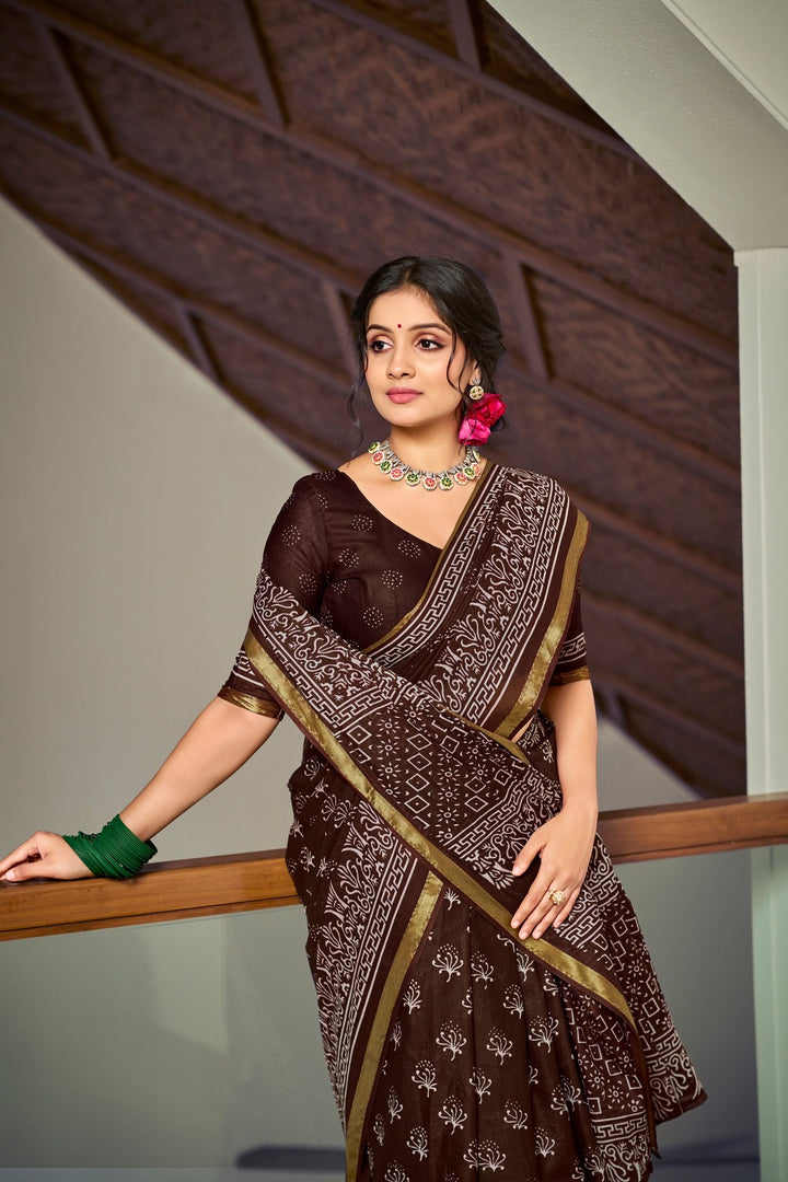 Coffee Brown Soft Cotton Saree With Unstiched Blouse