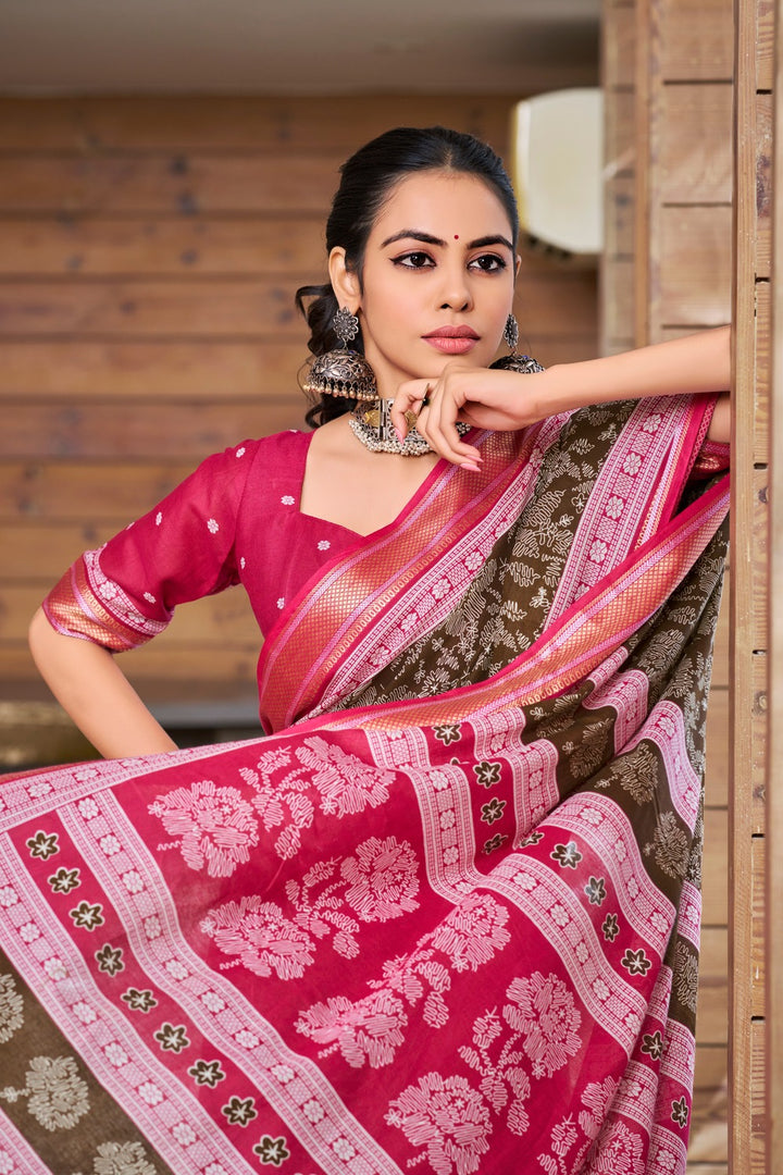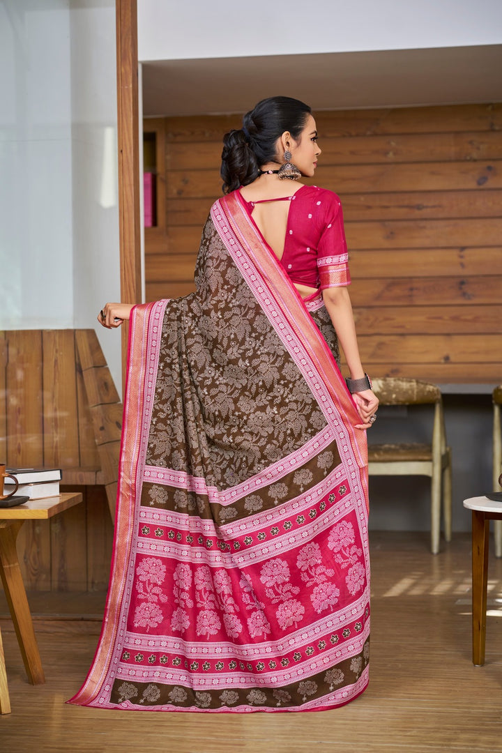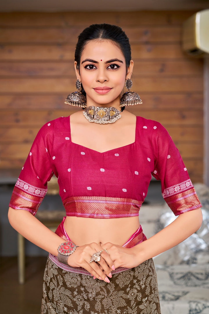 Coffee Brown Soft Cotton Saree With Unstiched Blouse
