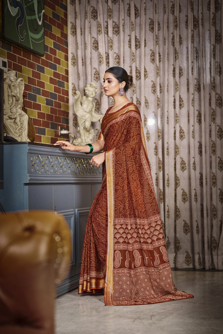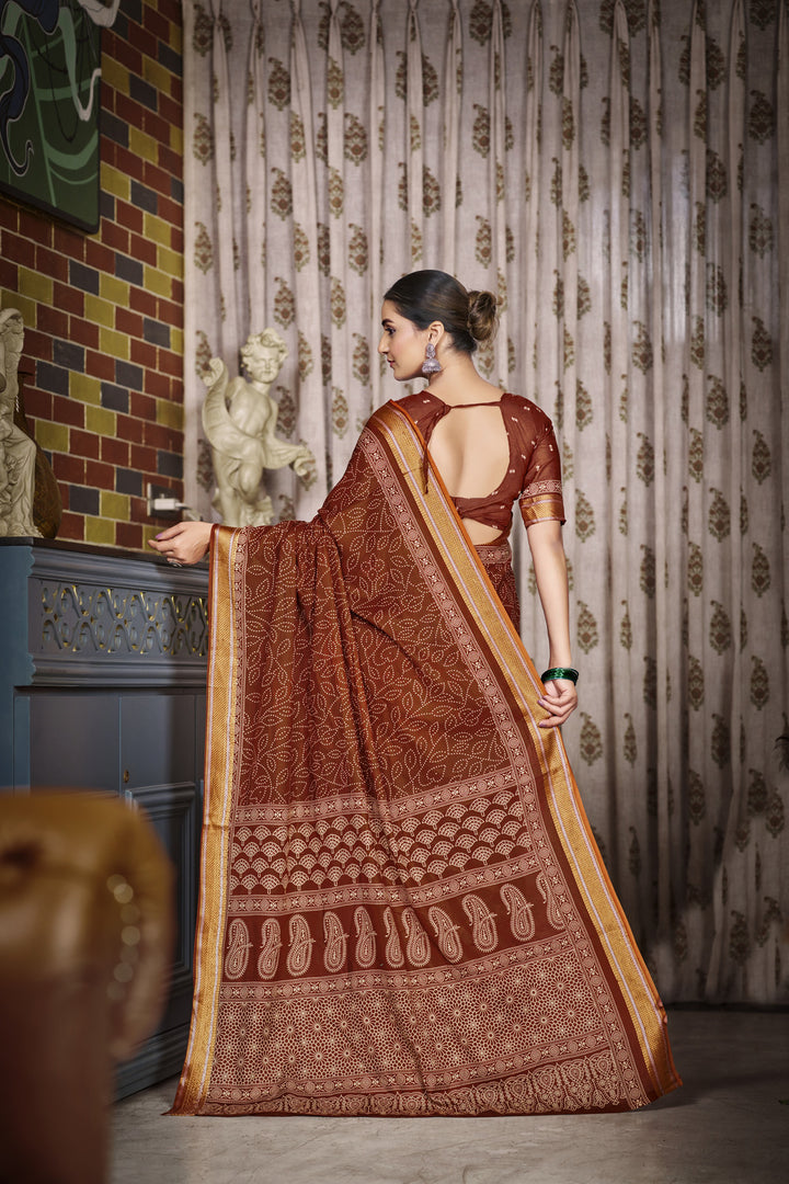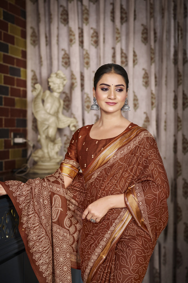 Coffee Brown Soft Cotton Saree With Unstiched Blouse