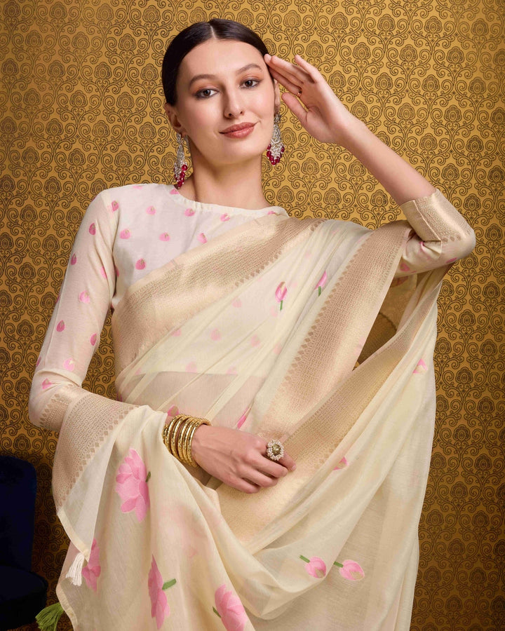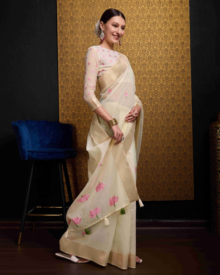 Textured finish: Linen has a natural texture that gives the saree a graceful and refined look.