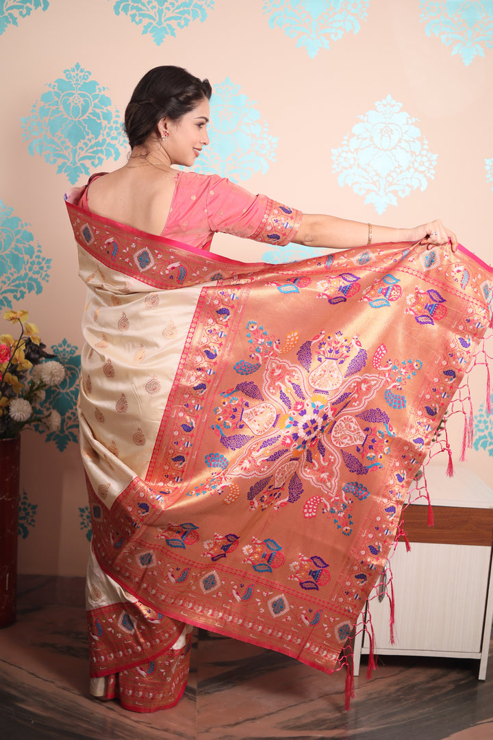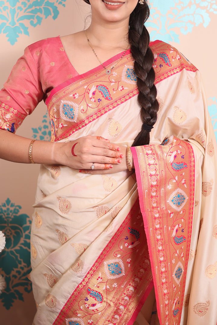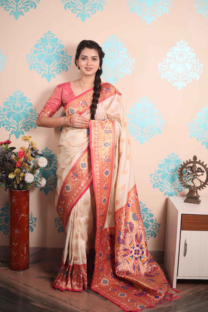 A royal and timeless saree known for its handwoven silk, peacock or lotus motifs, and rich zari borders. Often features vibrant colors with contrasting pallus. It's a symbol of grace and is traditionally worn at weddings and religious ceremonies.