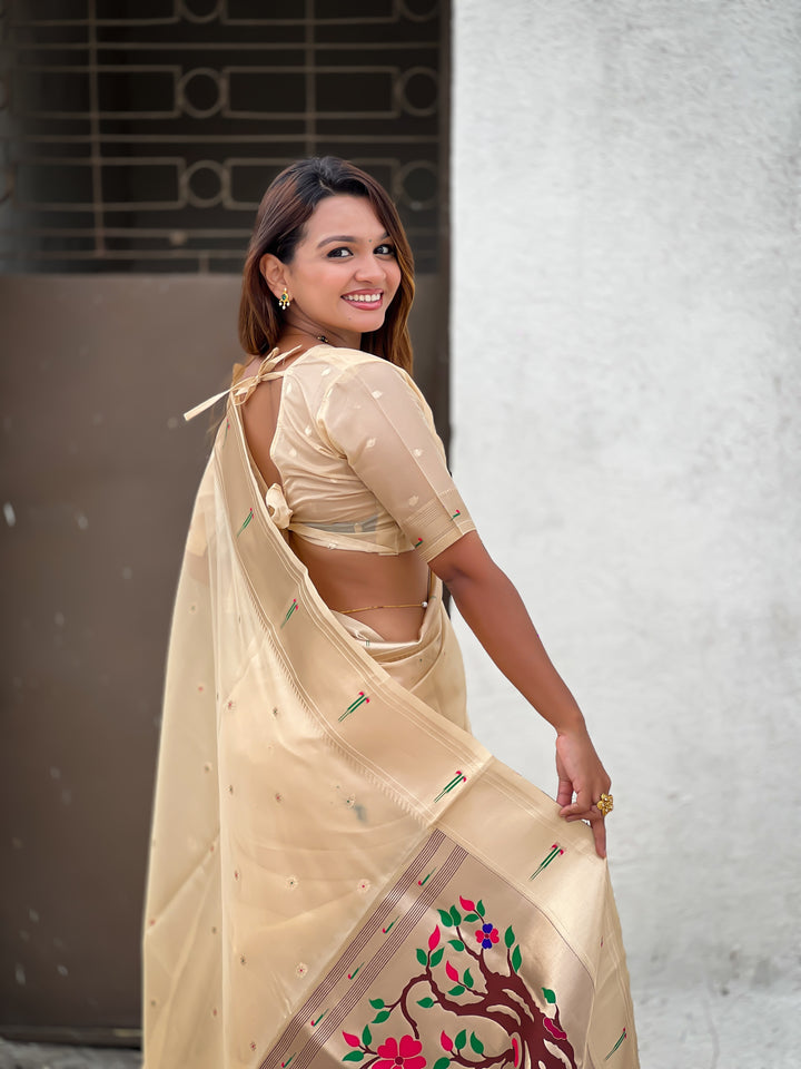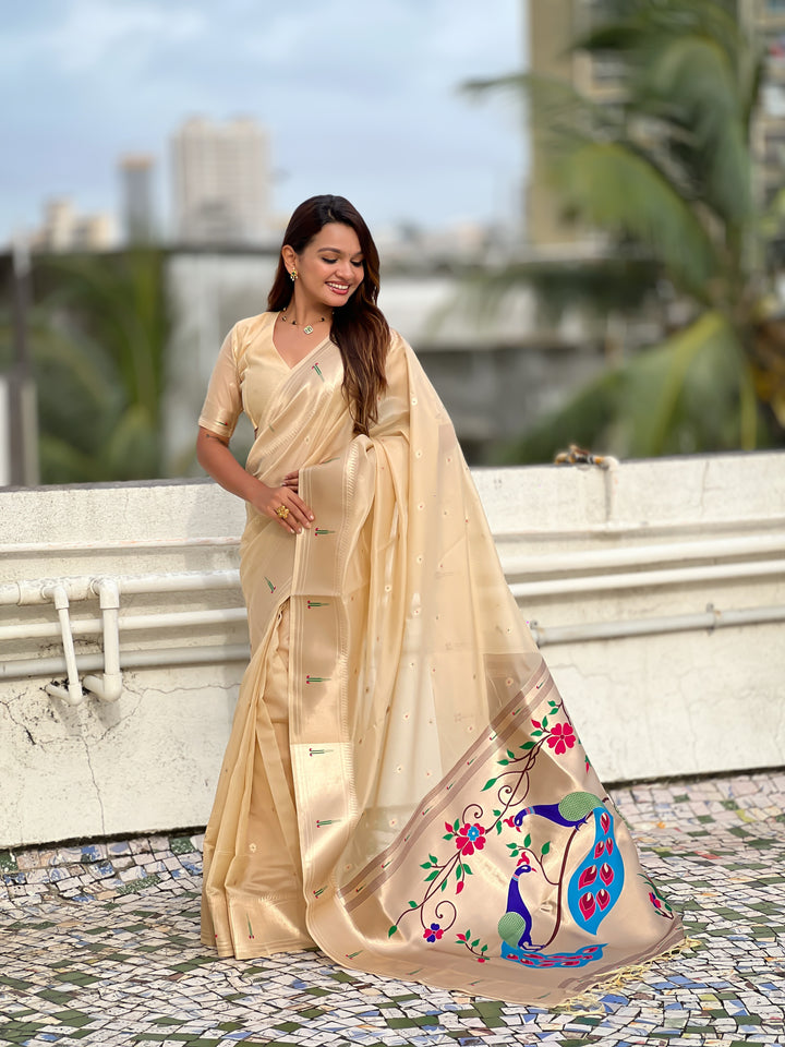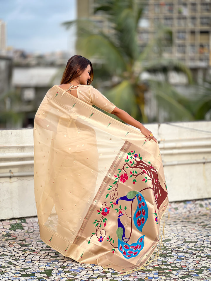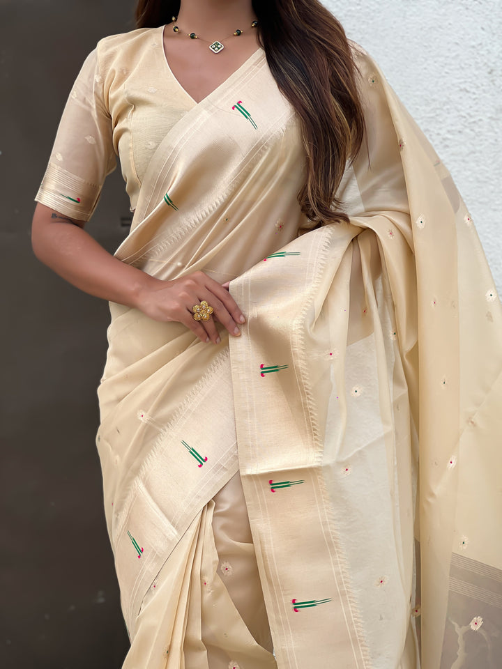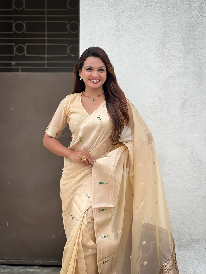 Cream Soft Organza Saree With Unstiched Blouse