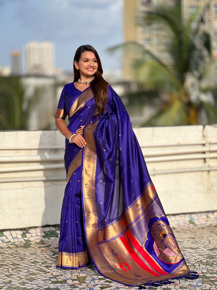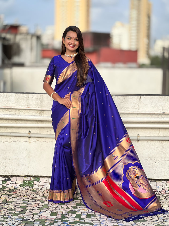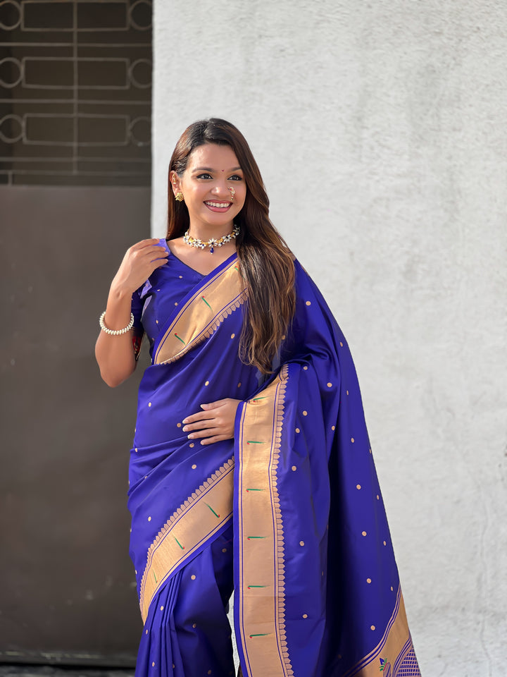 Dark Blue Soft Silk Saree With Unstiched Blouse