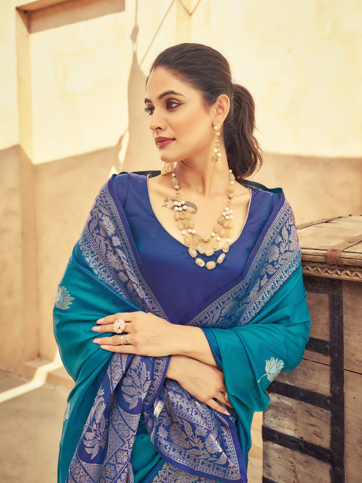 Dark Rama Soft Silk Saree With Unstitched Blouse