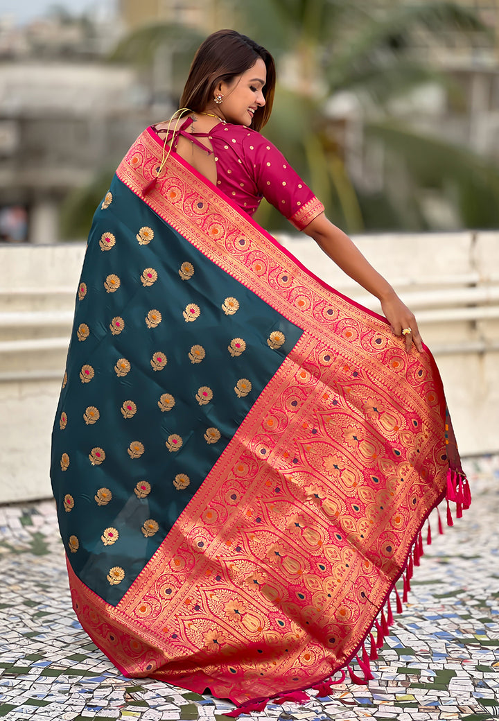 Denim Soft Silk Saree With Unstiched Blouse