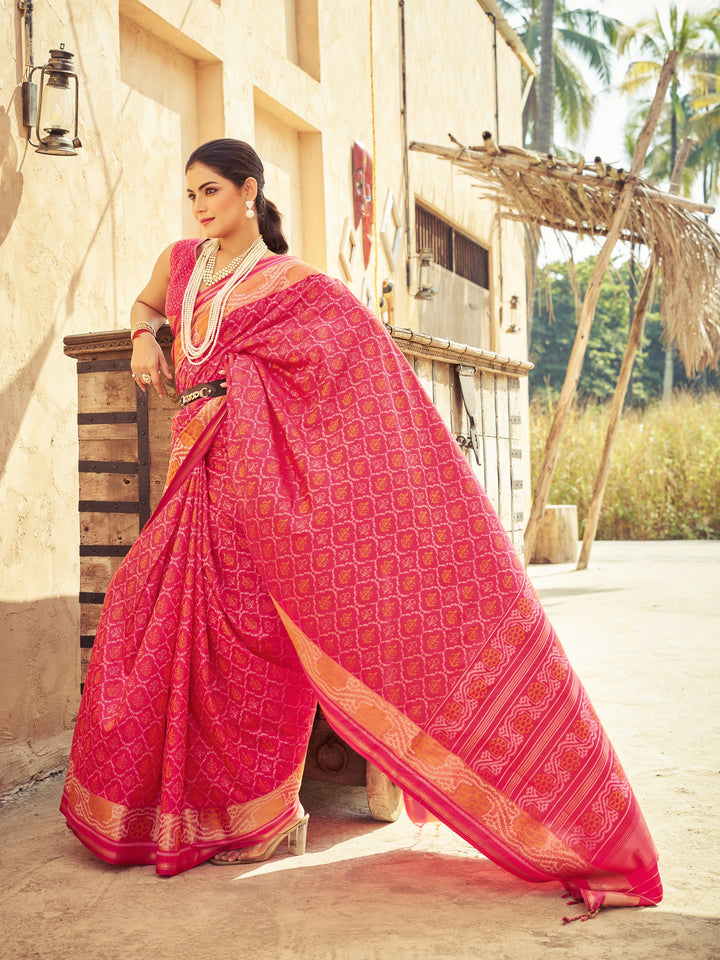 Gajari Pink Soft Silk Saree With Unstitched Blouse