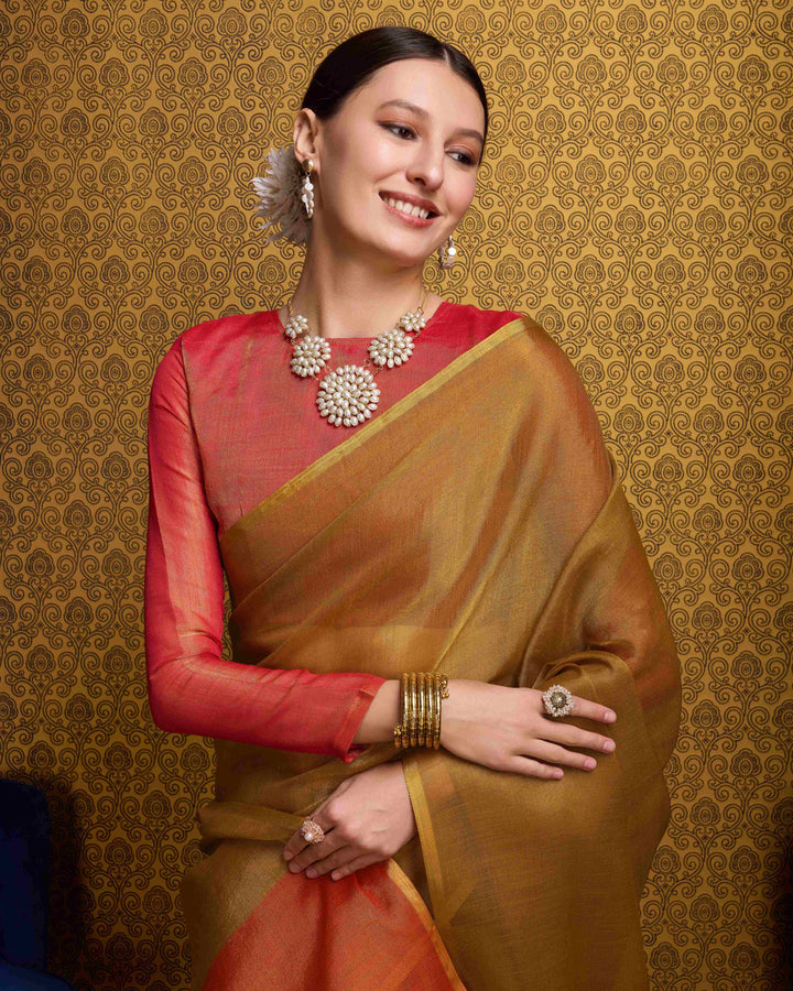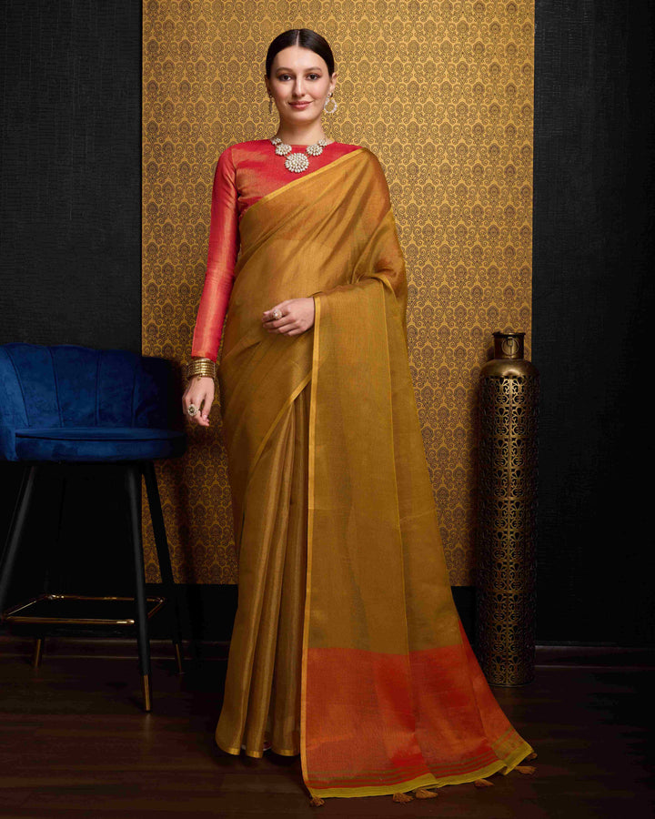 Textured finish: Linen has a natural texture that gives the saree a graceful and refined look.