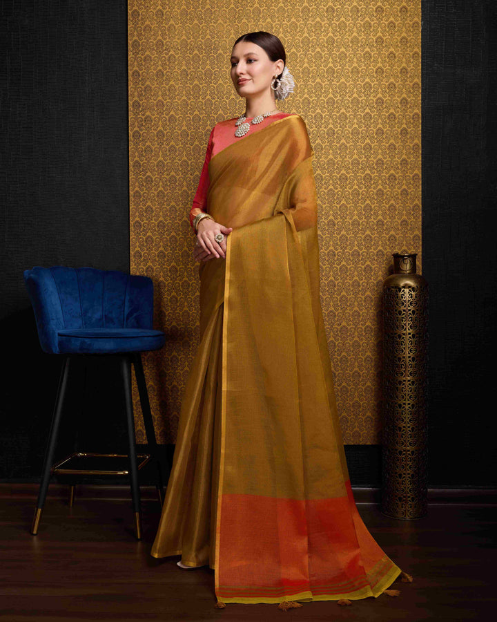 A Linen saree is a traditional Indian garment made from linen fabric, known for its lightweight, breathable, and slightly crisp texture. Linen sarees are often favored during warmer seasons because they allow air circulation and help keep the wearer cool and comfortable. They come in a variety of colors, patterns, and designs, and are especially popular for both formal and casual occasions due to their elegant and sophisticated appearance.