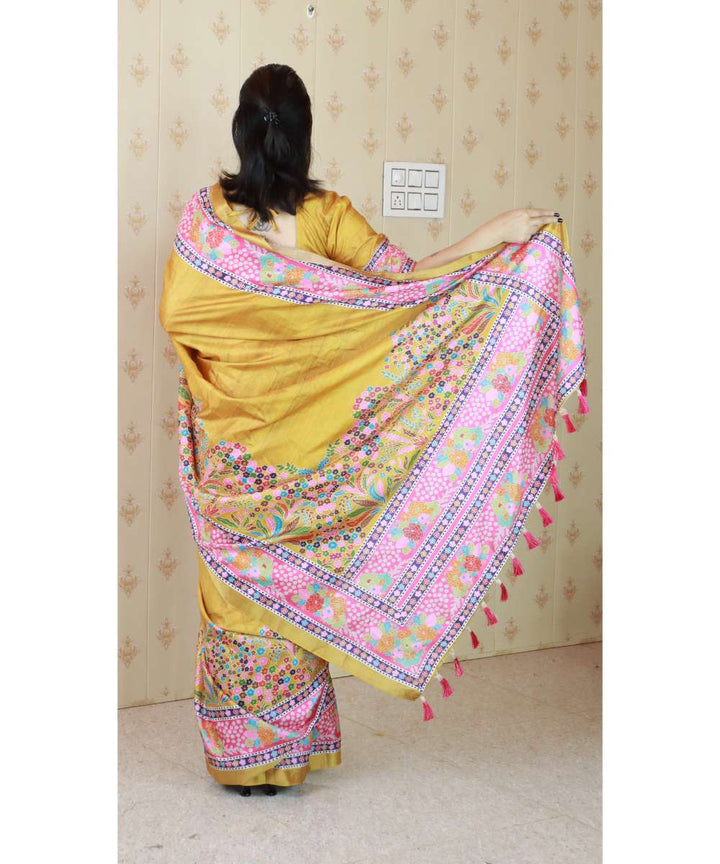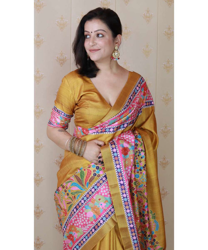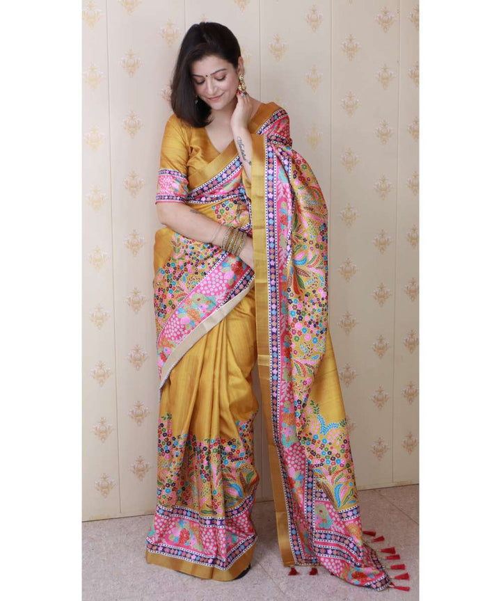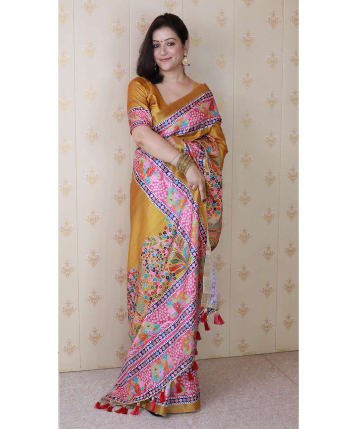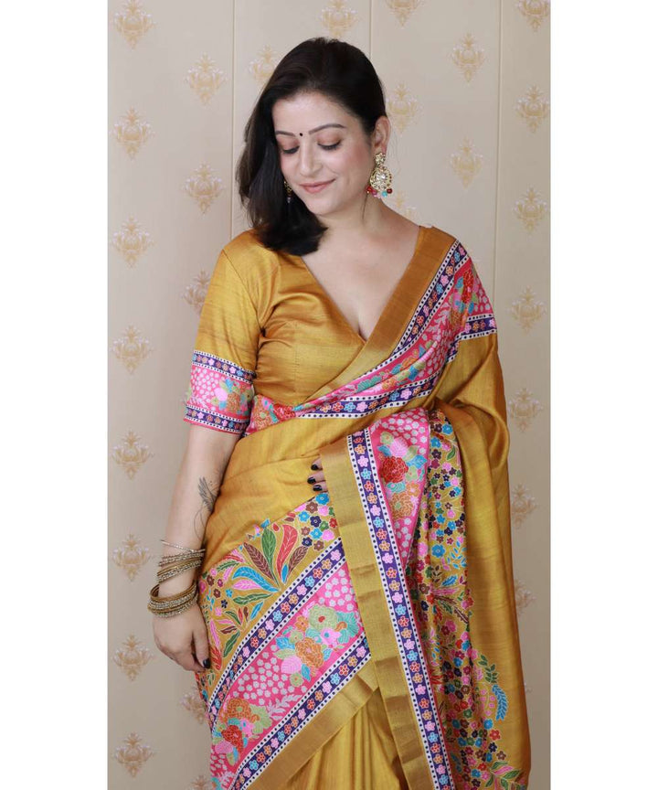 Gold Tussar Silk Saree With Unstiched Blouse