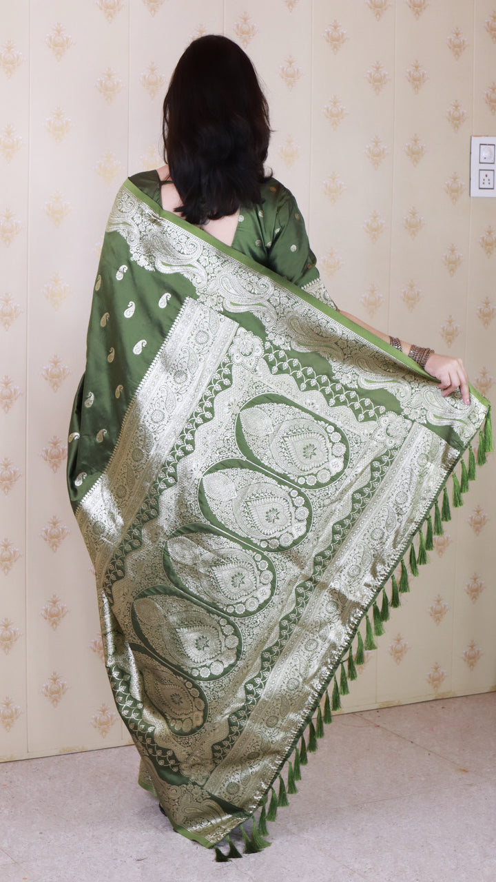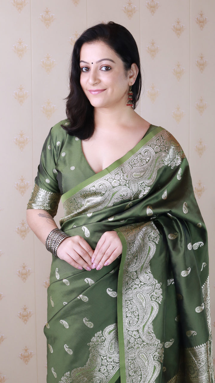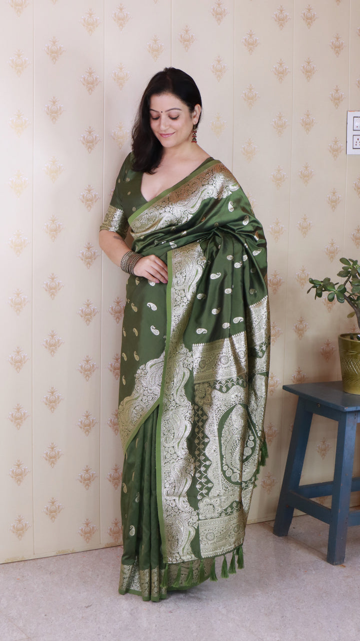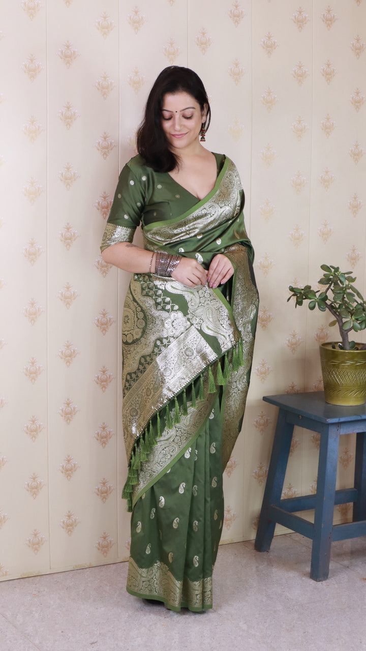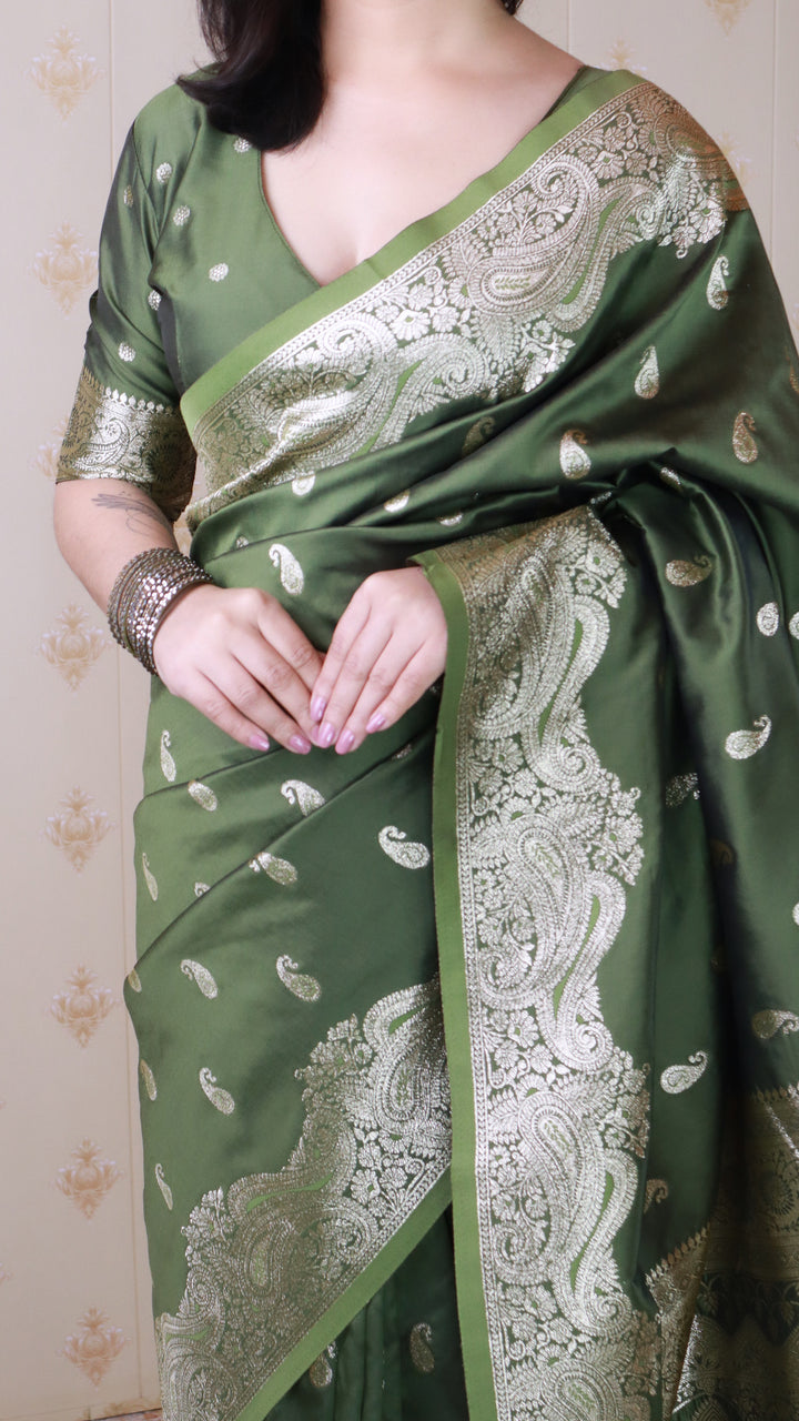 Green Banarasi Soft Silk Saree With Unstiched Blouse