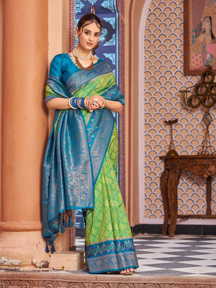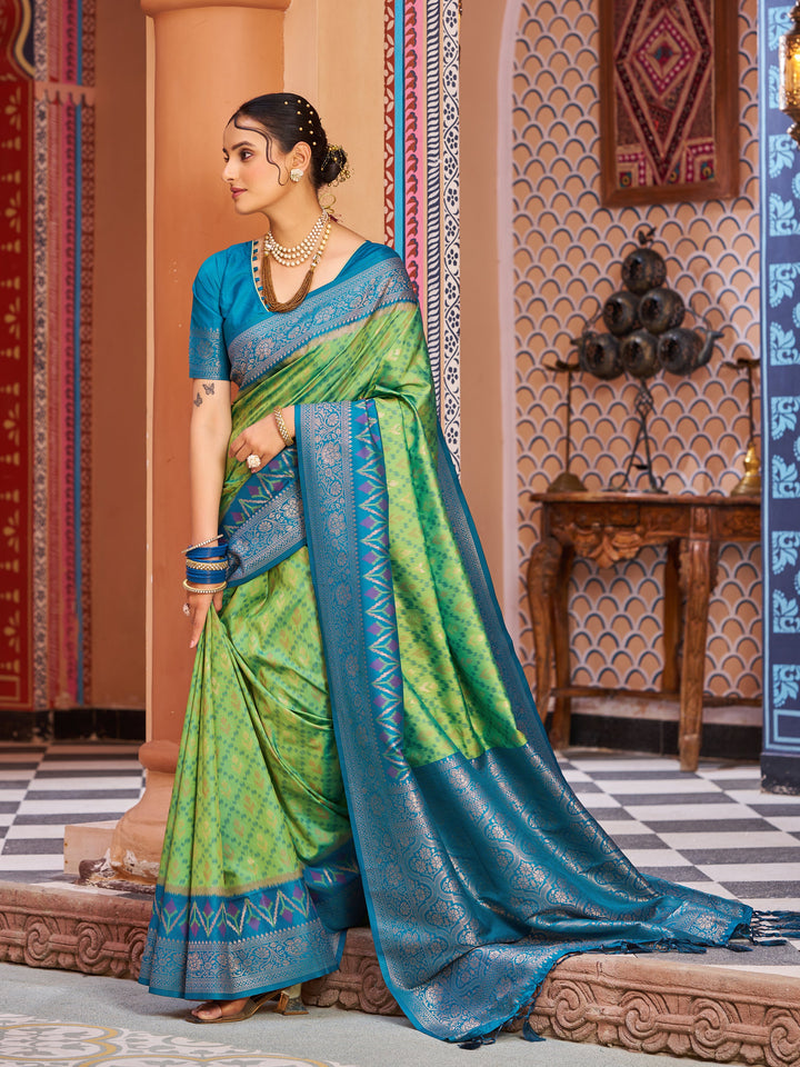 Green Blue Soft Silk Saree With Unstitched Blouse