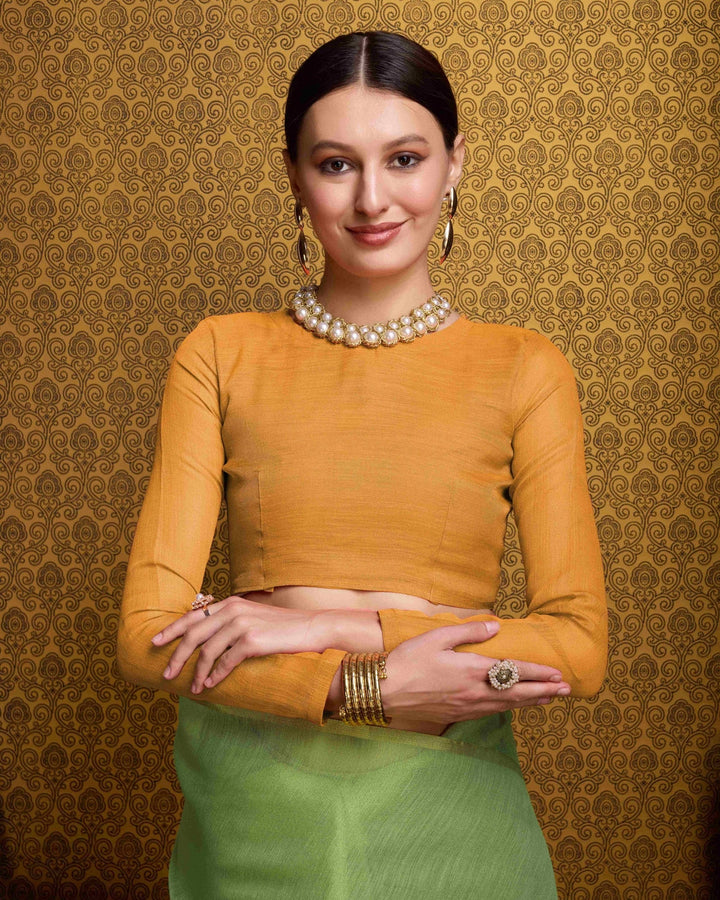 Textured finish: Linen has a natural texture that gives the saree a graceful and refined look.