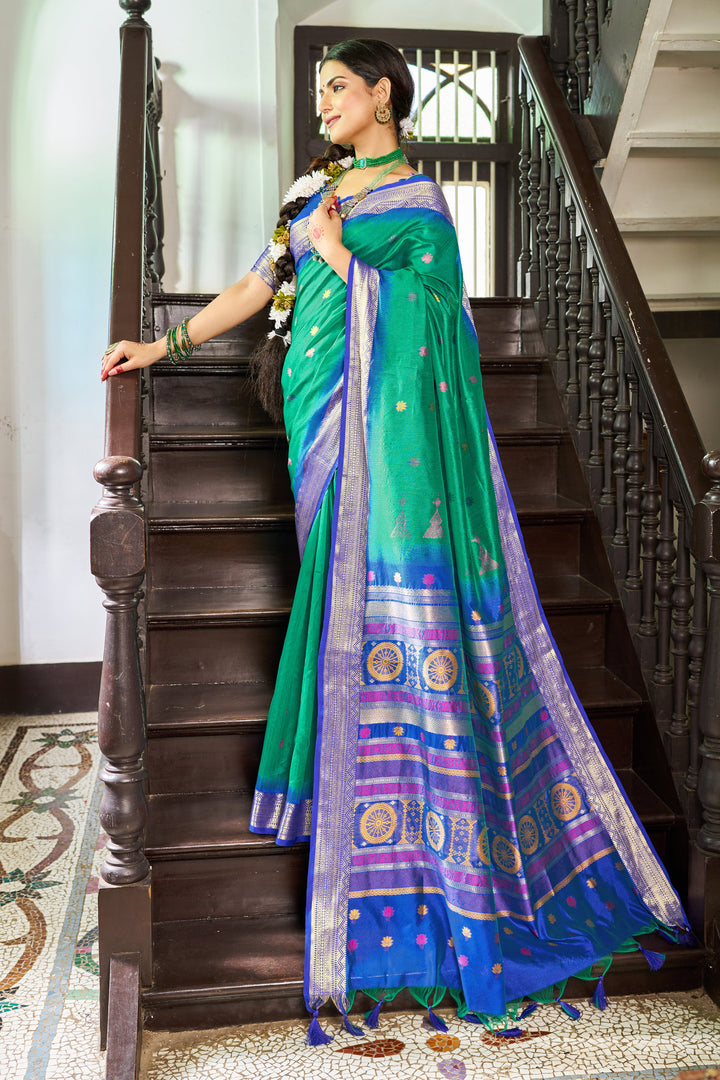 Green Rama Raw Silk Saree With Unstitched Blouse