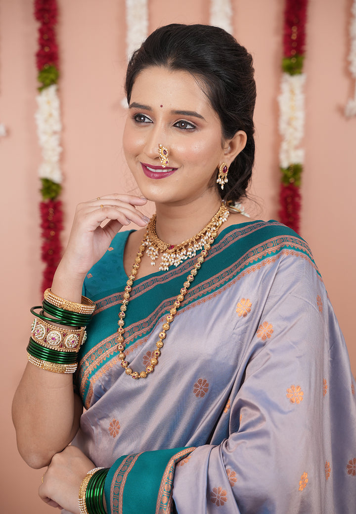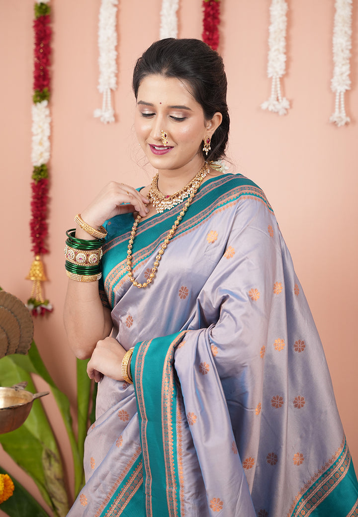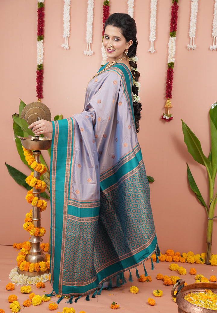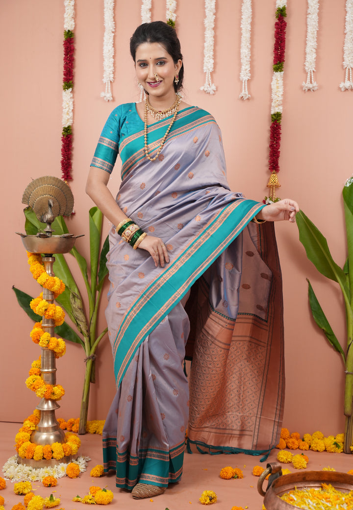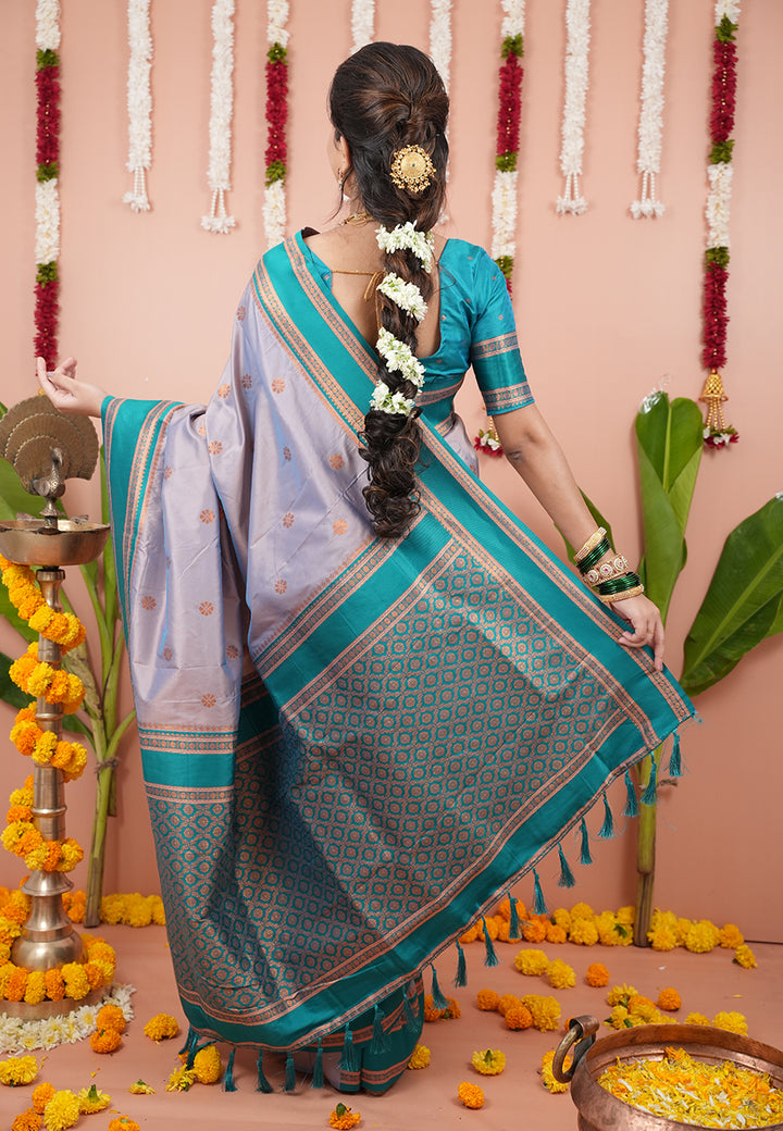 Grey Rama Soft Silk Saree With Unstiched Blouse