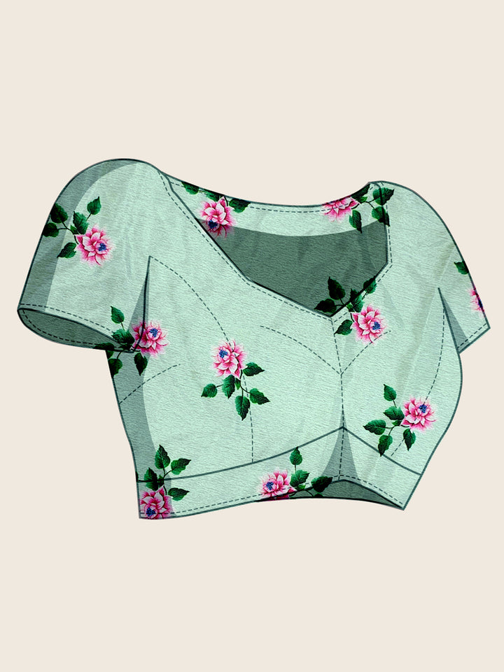 Ice Blue Chinon Saree With Unstiched Blouse