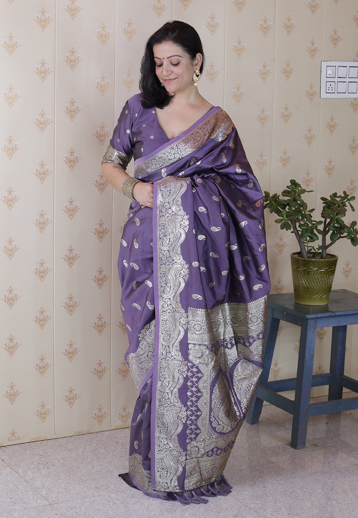 Lavender Banarasi Soft Silk Saree With Unstiched Blouse