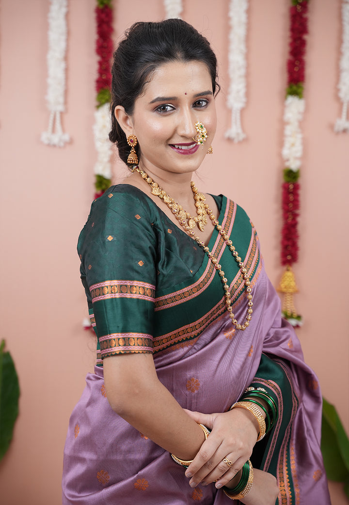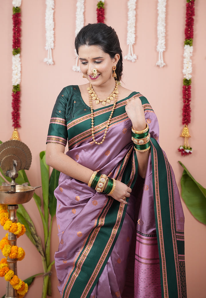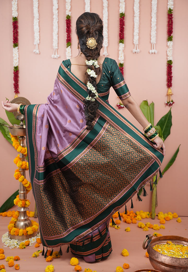 Lavender Green Soft Silk Saree With Unstiched Blouse