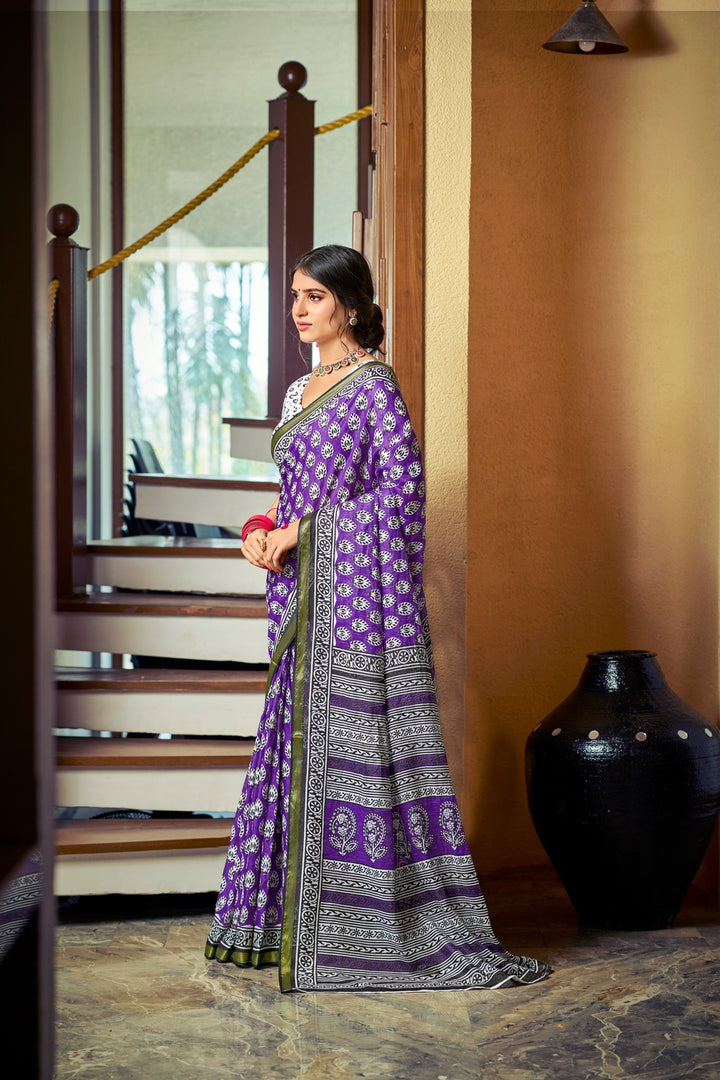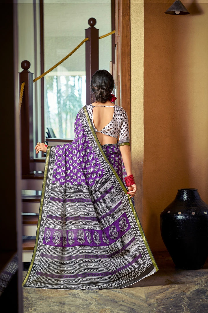Lavender Soft Cotton Saree With Unstiched Blouse