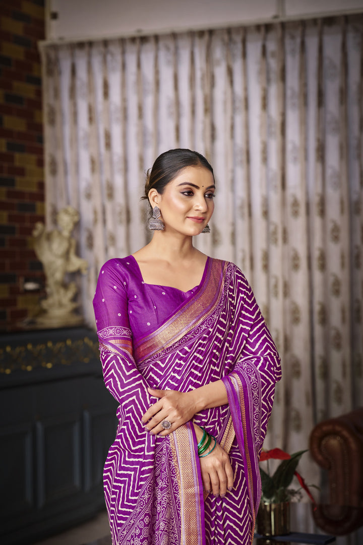 Lavender Soft Cotton Saree With Unstiched Blouse