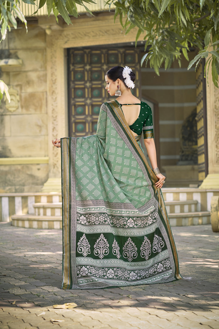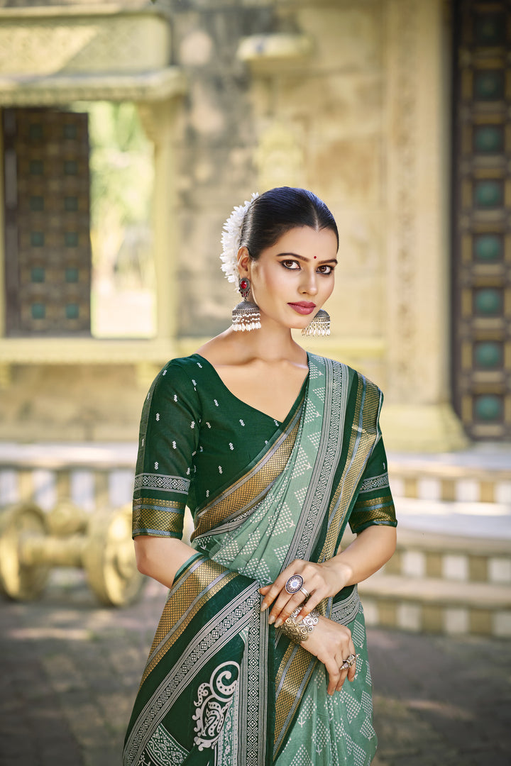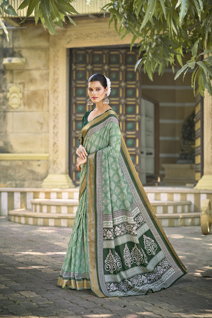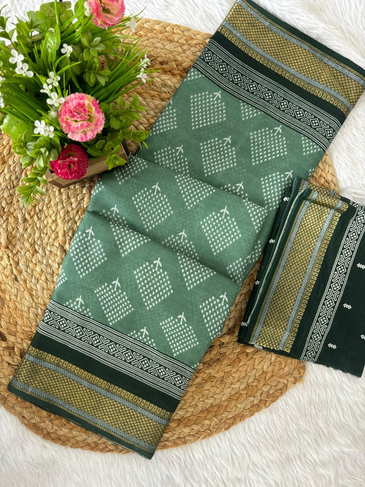 Light Green Soft Cotton Saree With Unstiched Blouse
