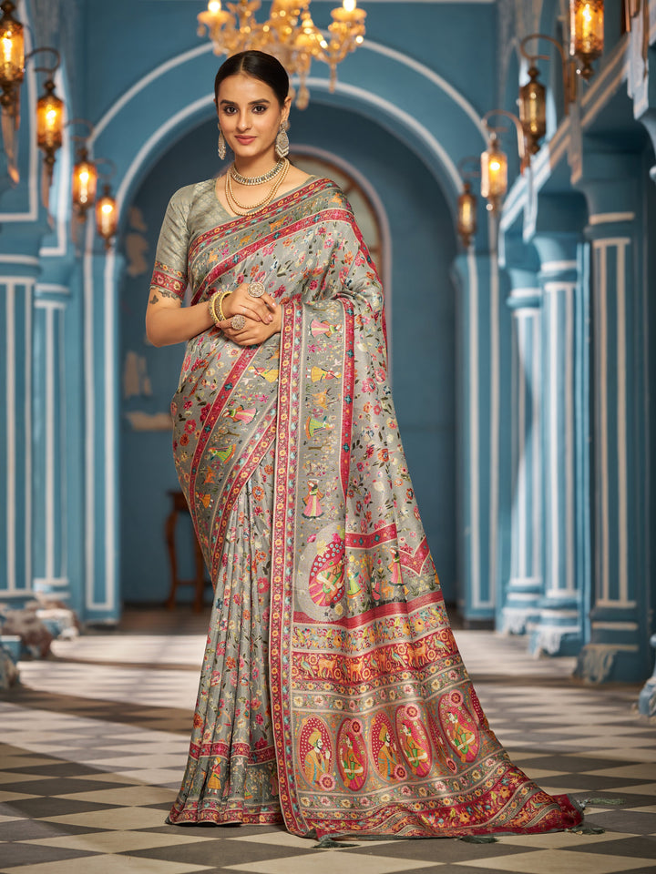 Light Grey Soft Silk Saree With Unstitched Blouse