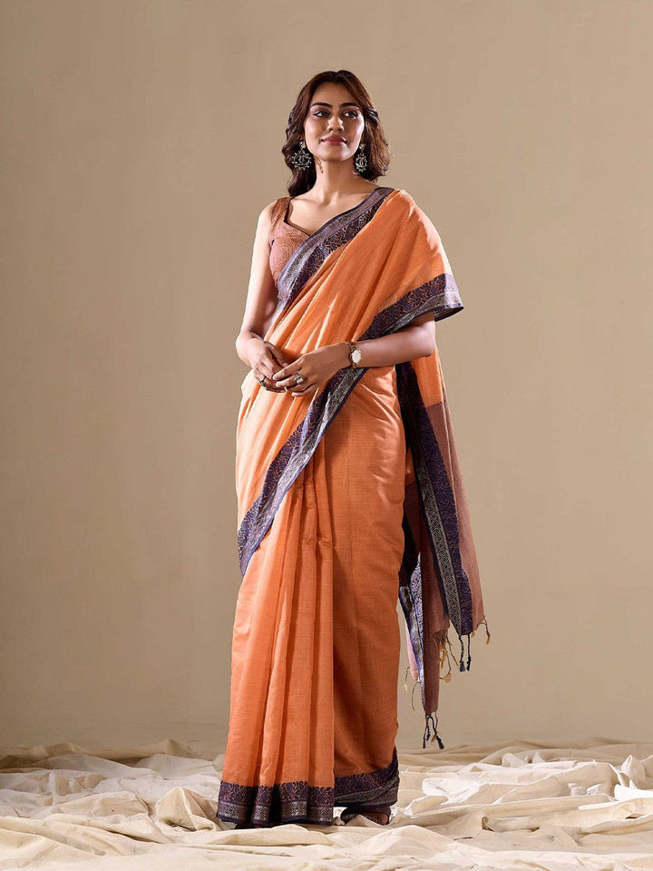 Light Orange Cotton Saree With Unstitched Blouse
