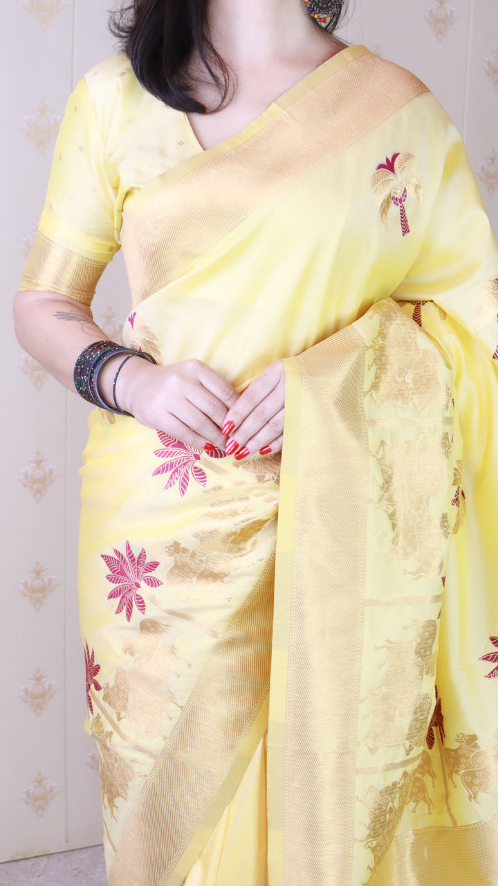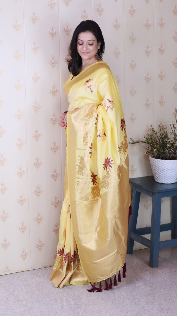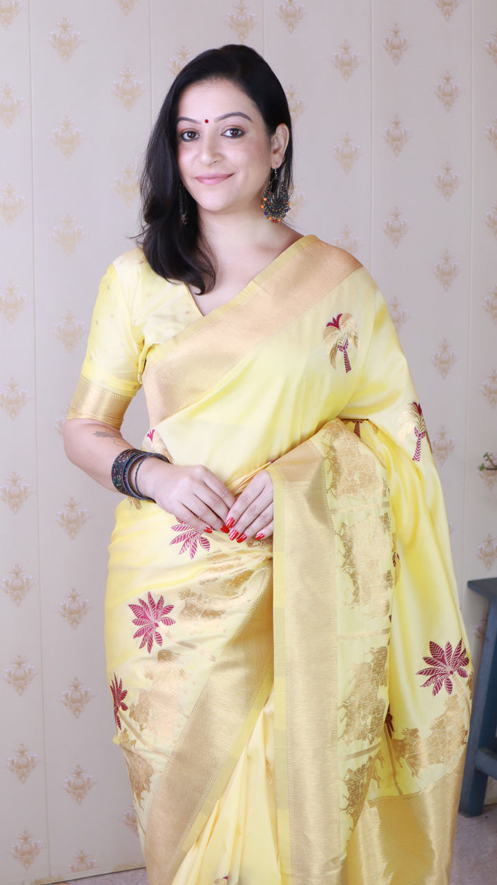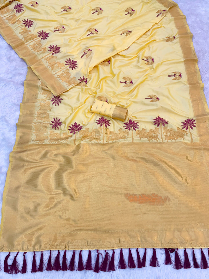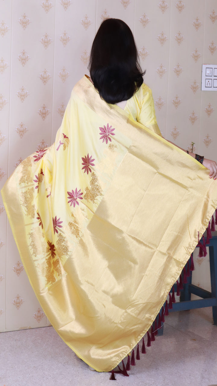 Light Yellow Soft Silk Saree With Unstiched Blouse