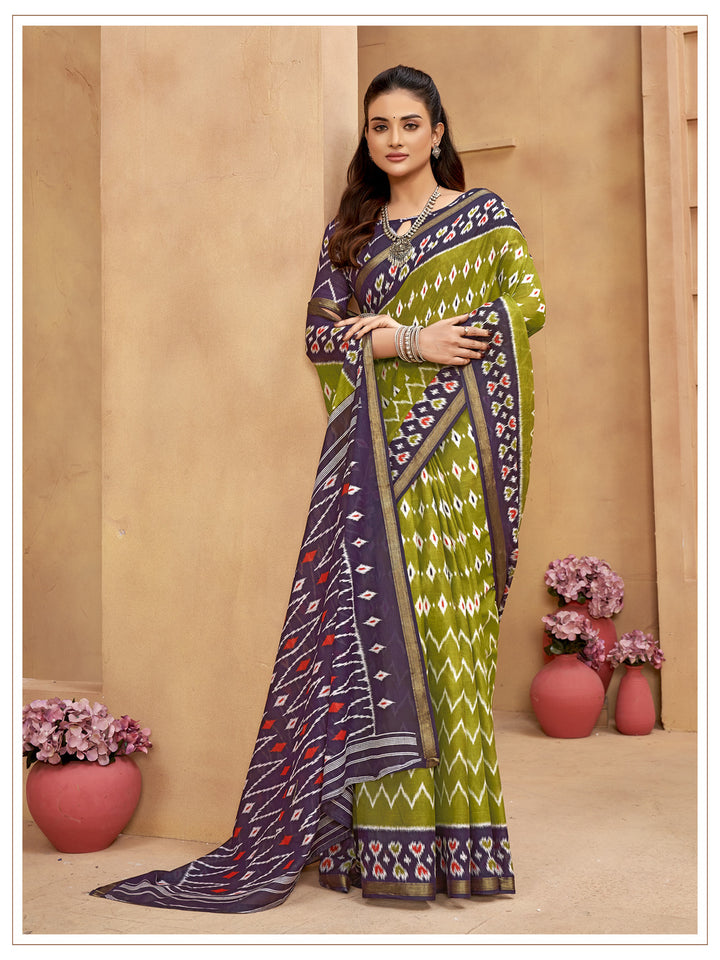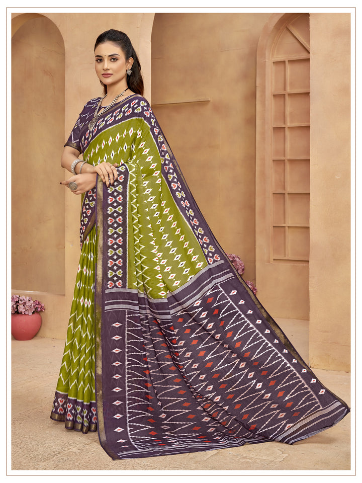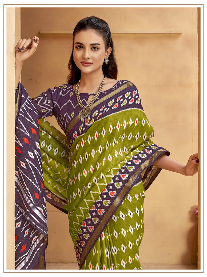 Lime Green Soft Cotton Saree With Unstiched Blouse