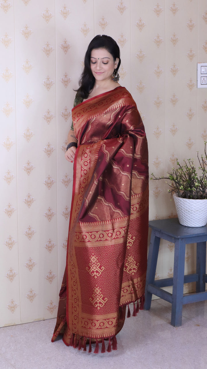 Made from fine silk yarns for a soft and smooth texture. Easy to drape and suitable for daily use, small events, and traditional functions.