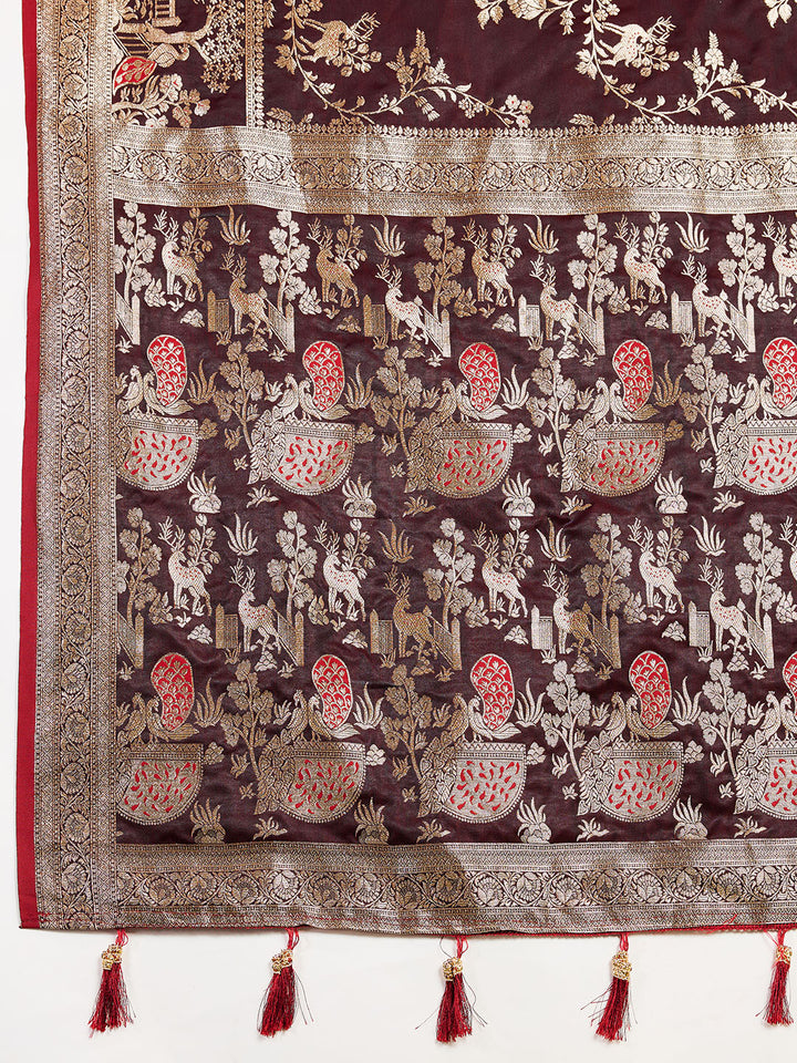 Maroon Soft Silk Sarees With Unstiched Blouse