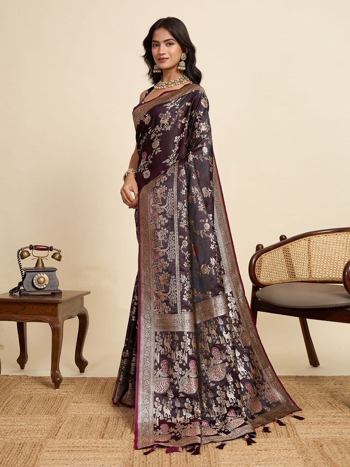 Maroon Soft Silk Sarees With Unstiched Blouse