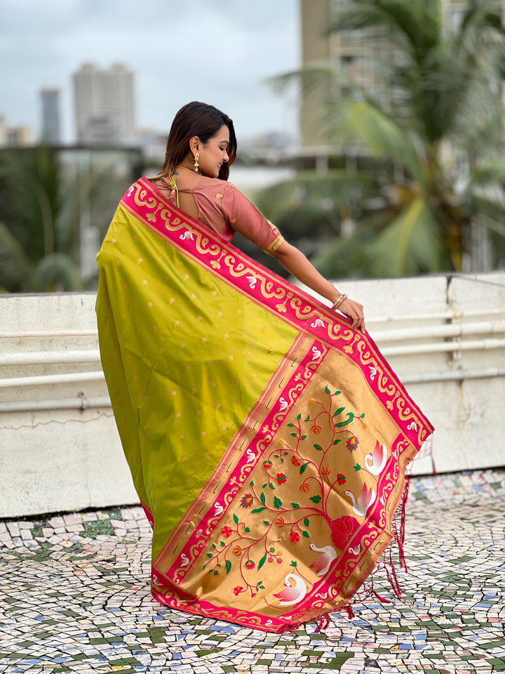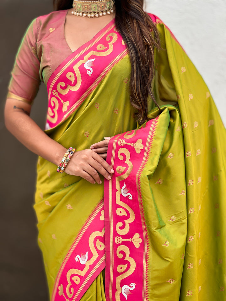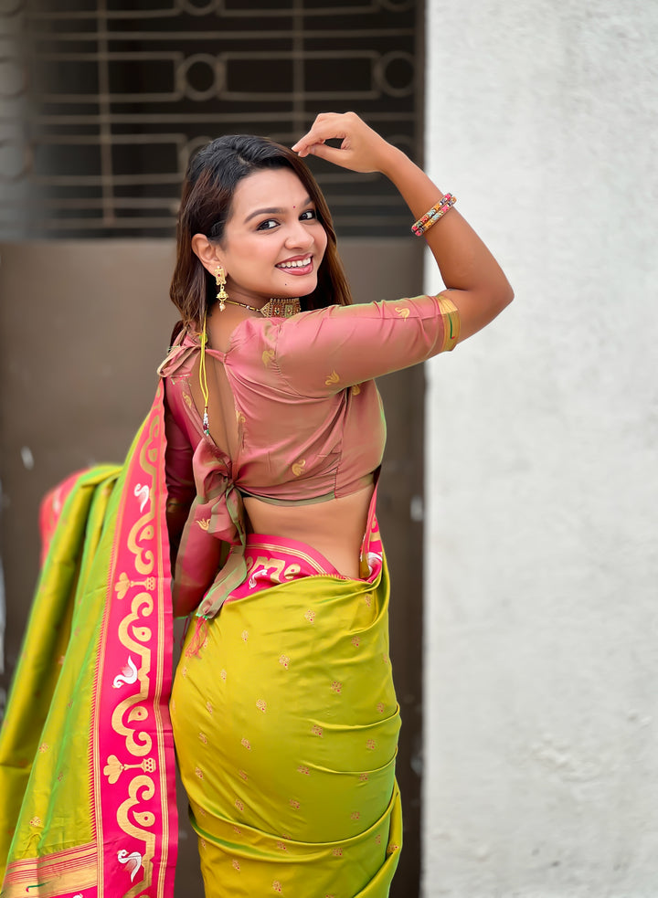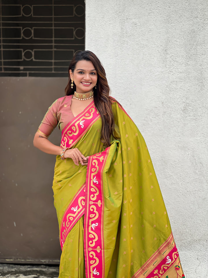 Mehendi Paithani Saree With Unstiched Blouse