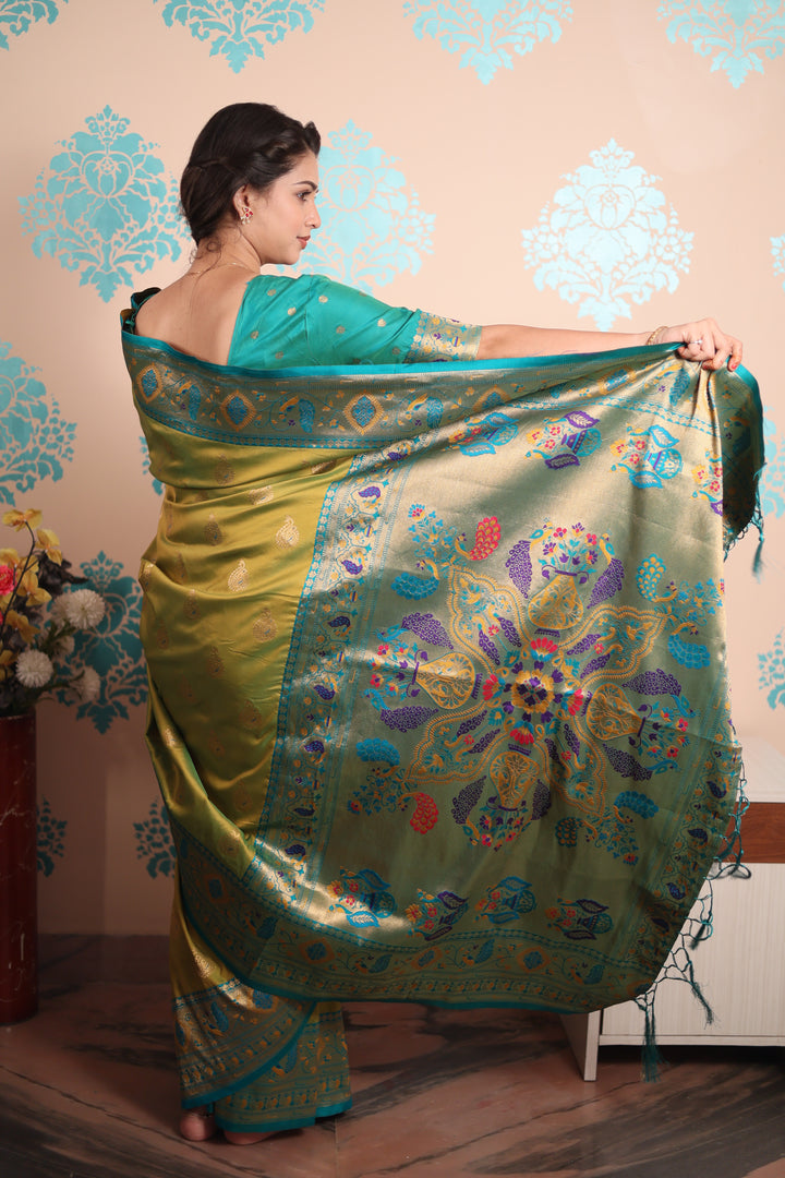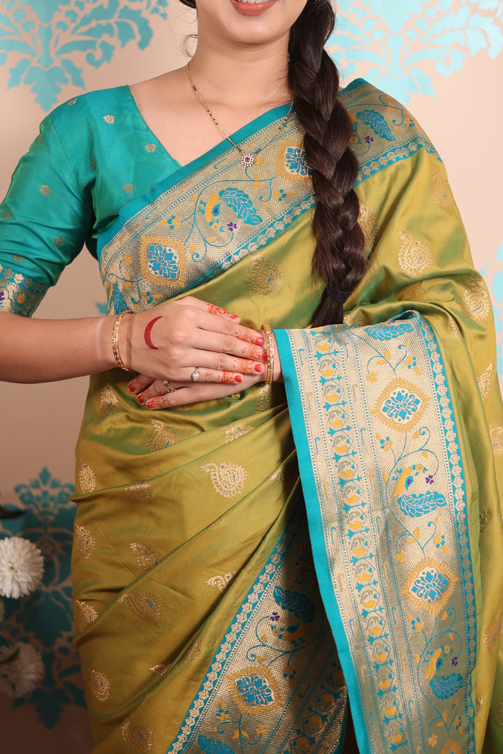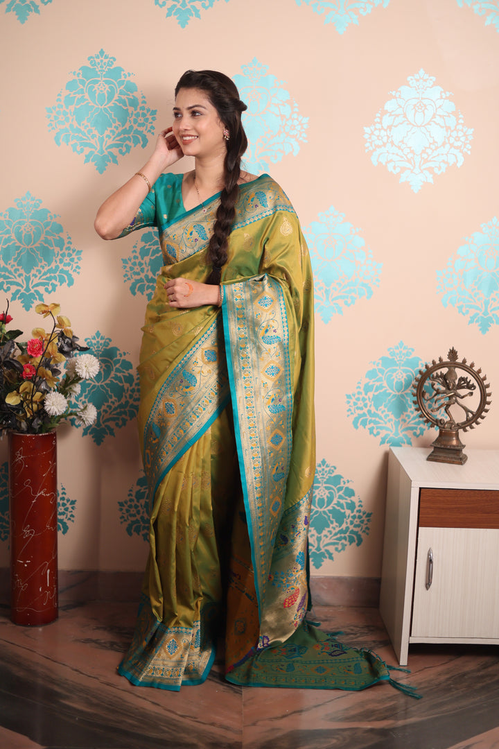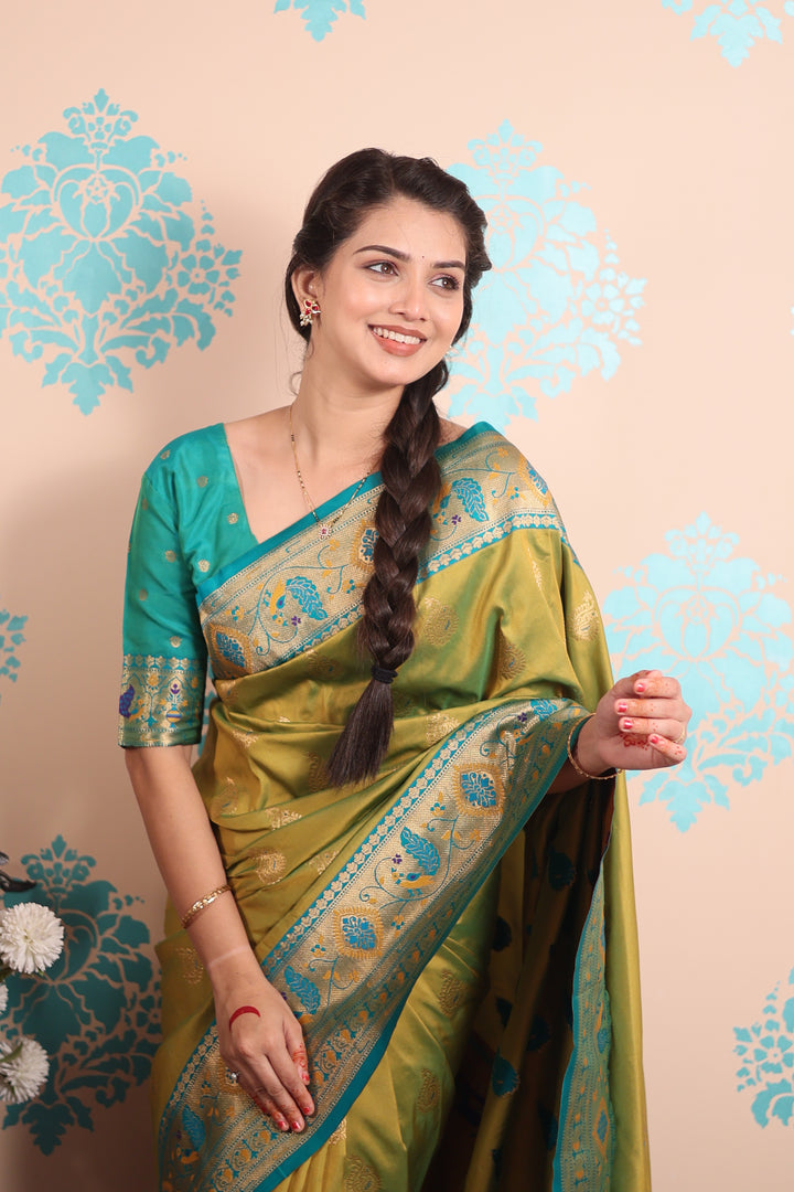 Mehendi Paithani Saree With Unstiched Blouse