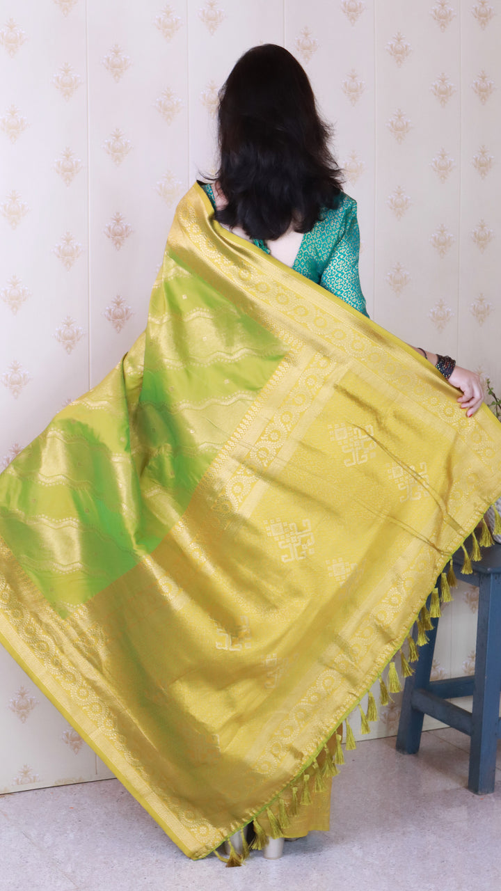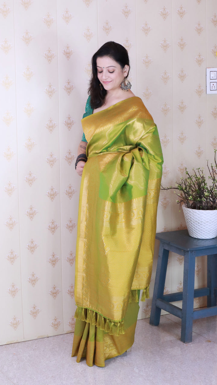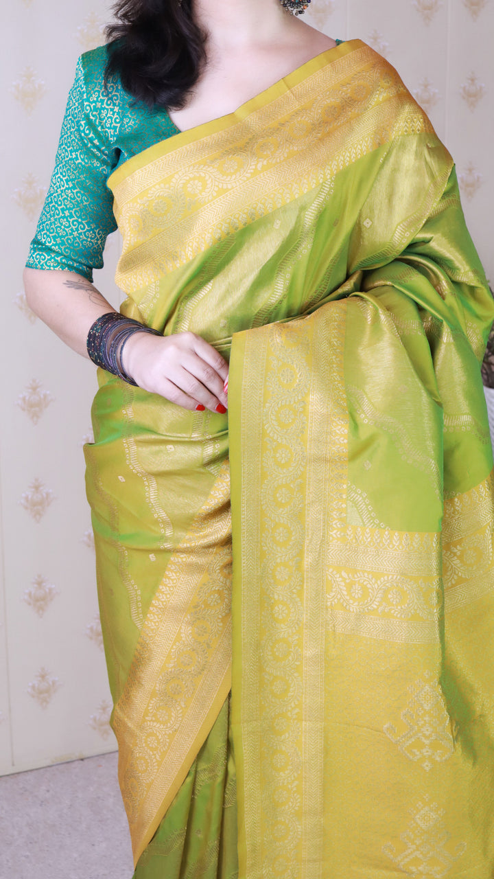 Mehendi Soft Silk Saree With Unstiched Blouse