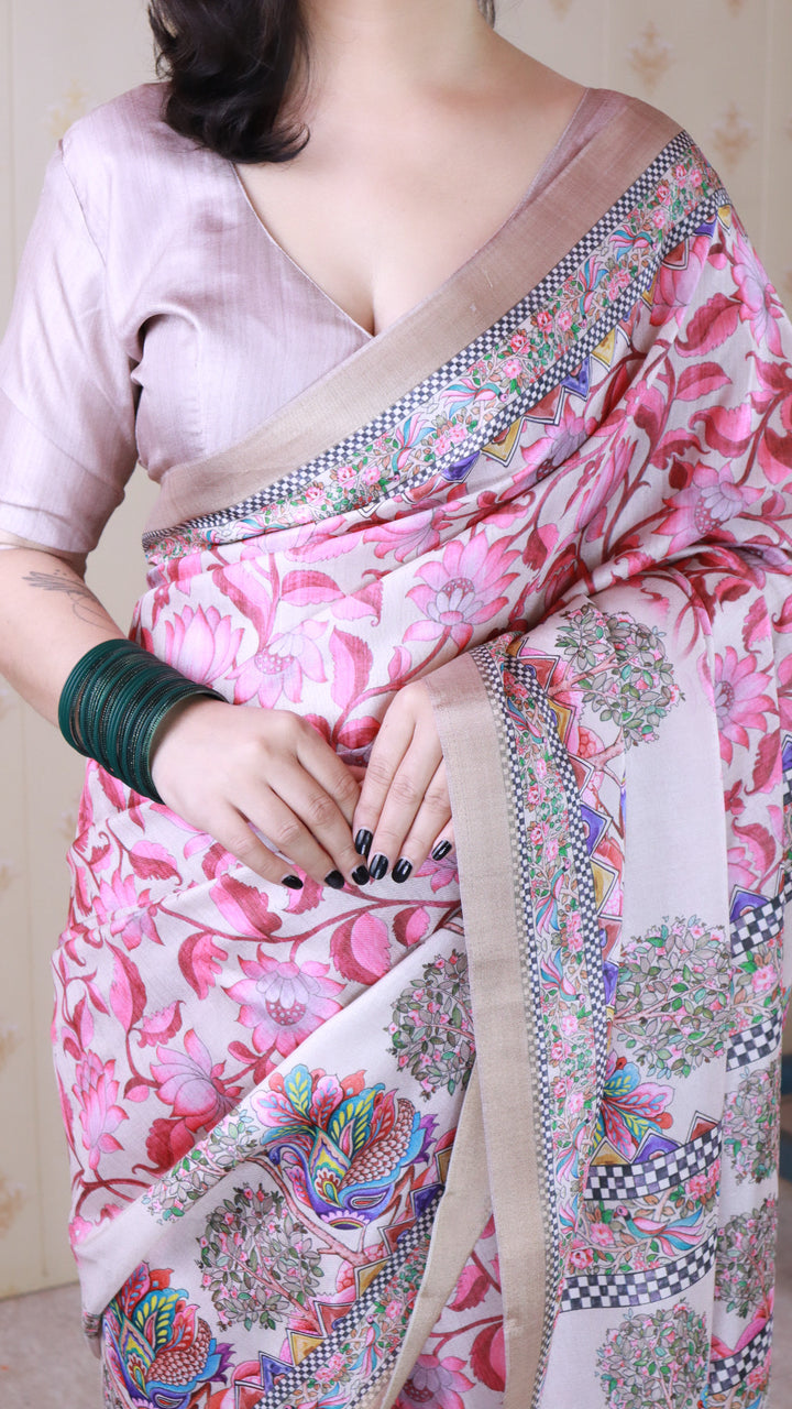 Multi Color Tussar Silk Saree With Unstiched Blouse