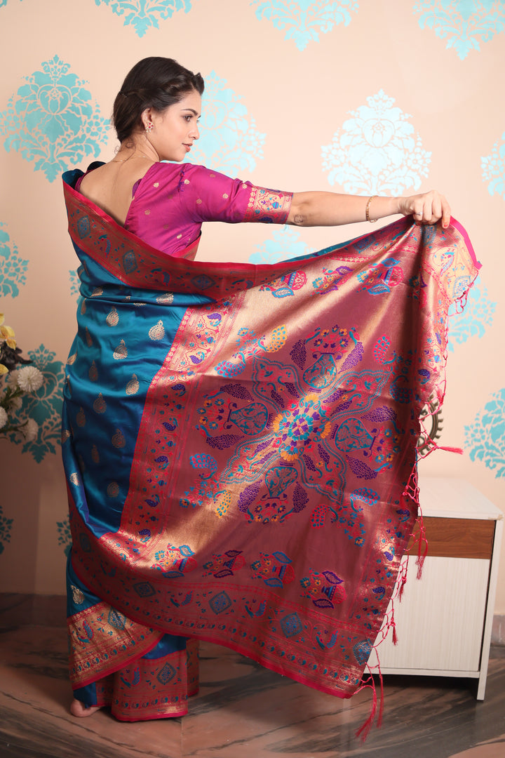 A royal and timeless saree known for its handwoven silk, peacock or lotus motifs, and rich zari borders. Often features vibrant colors with contrasting pallus. It's a symbol of grace and is traditionally worn at weddings and religious ceremonies.