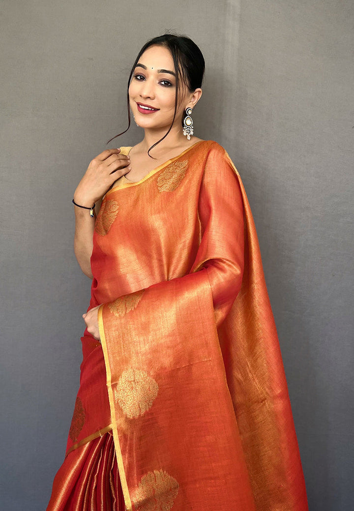 Shiny Sheen: Silk sarees are especially known for their radiant sheen, which can vary in intensity depending on the type of silk used. The fabric reflects light beautifully, adding to the overall elegance.