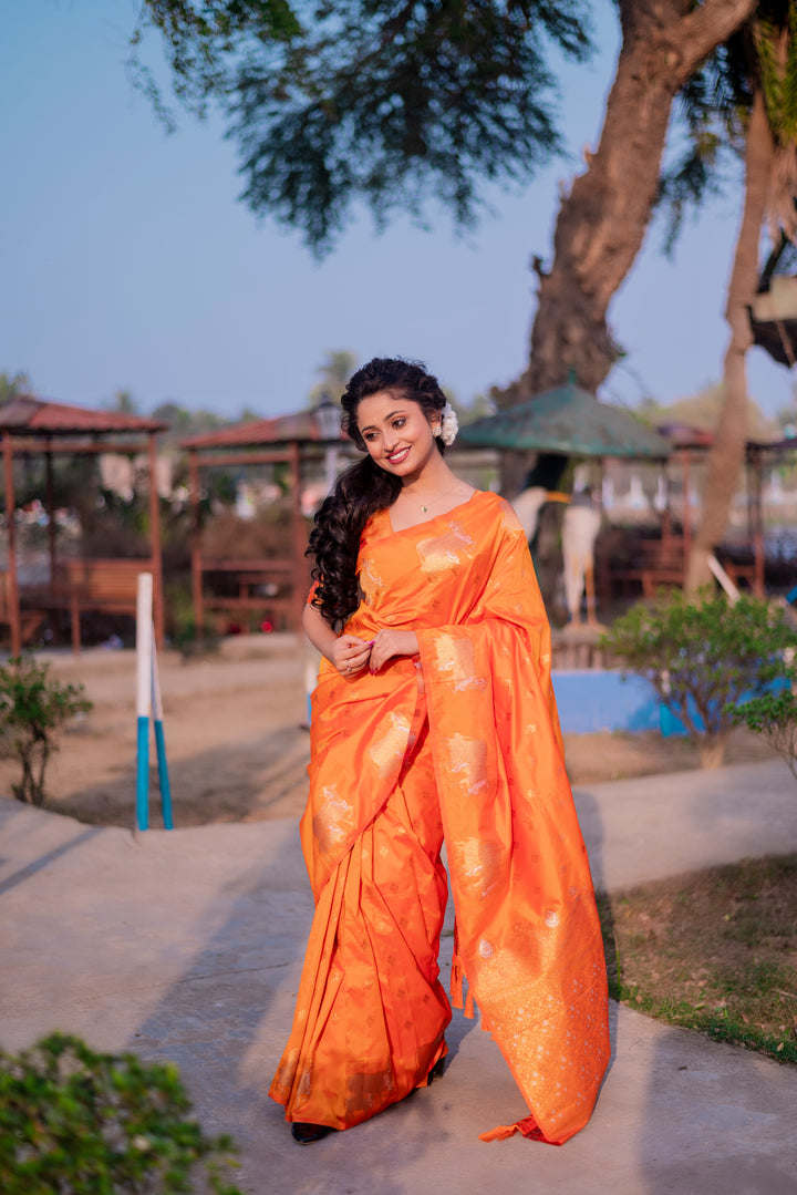 Orange Soft Moonga Silk Saree With Unstiched Blouse