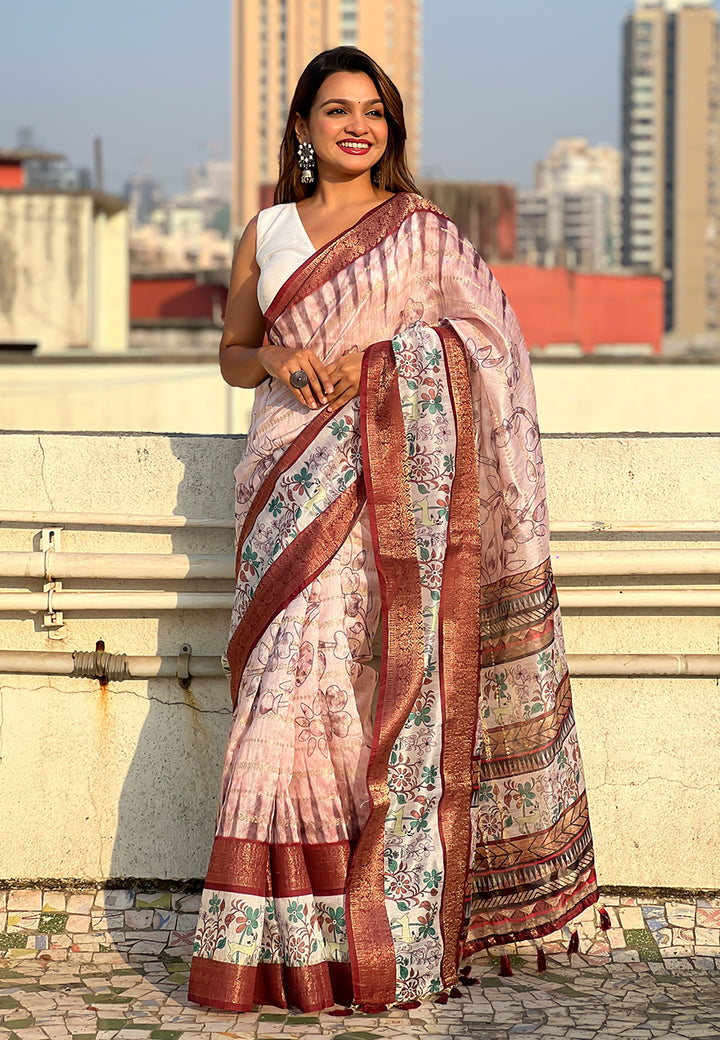 Peach Soft Chanderi Crush Saree With Unstiched Blouse
