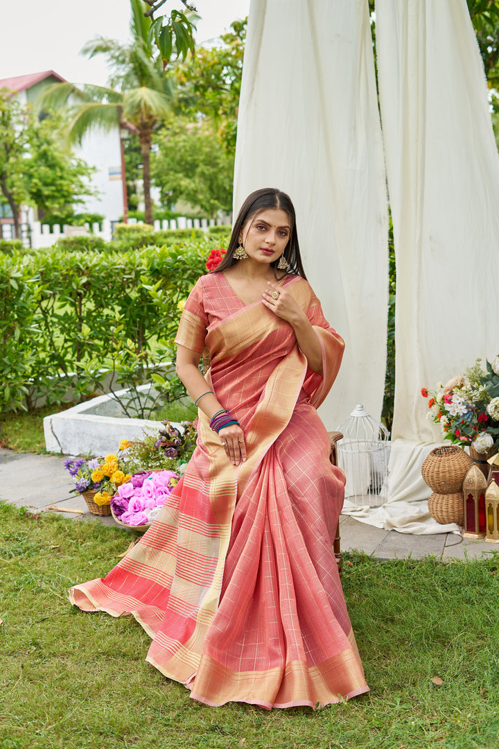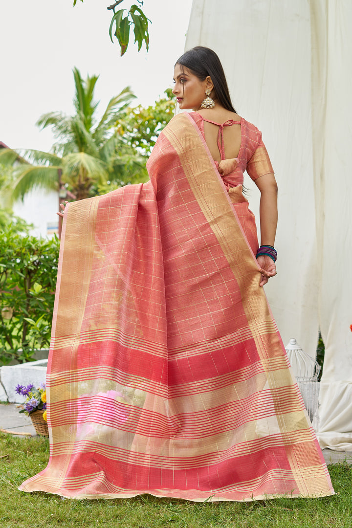 Peach Tissue Saree With Unstiched Blouse
